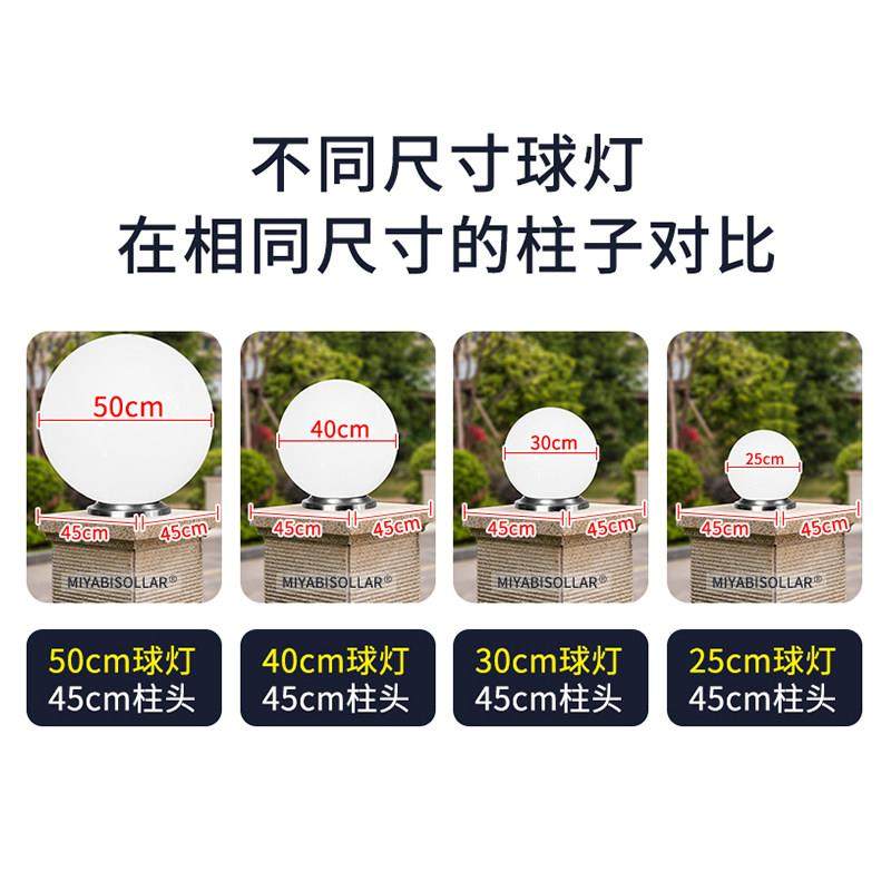 柱头灯接电款别墅庭院大门两侧柱子灯户外围墙柱顶灯室外圆球形灯