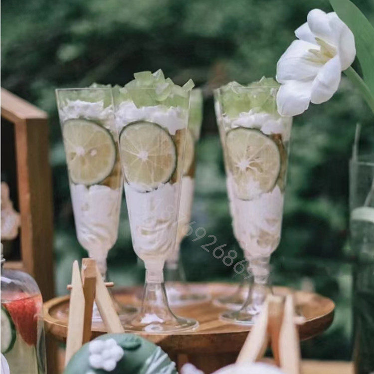 高脚香槟酒会鸡尾酒慕斯布丁冰淇淋果冻甜品硬塑料杯子透明包邮