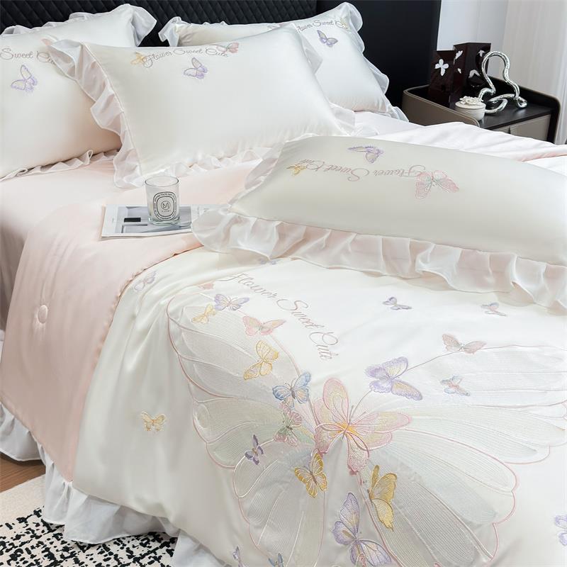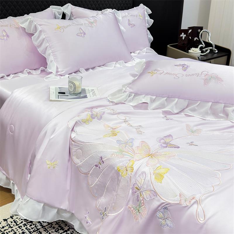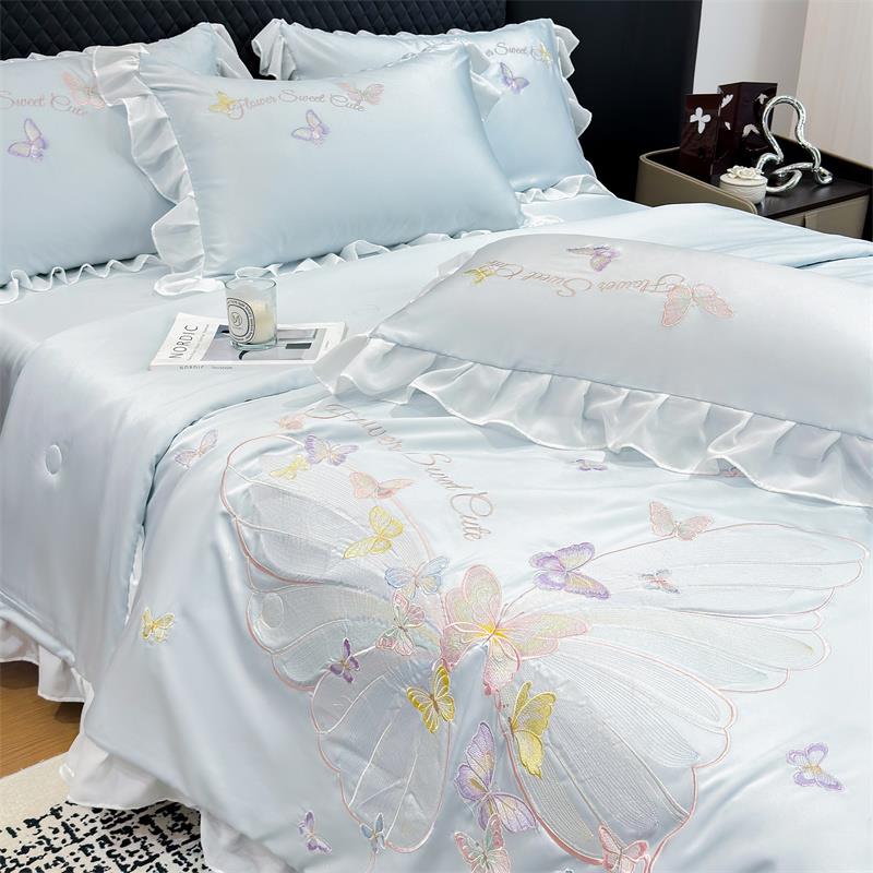 公主风夏季天丝夏被四件套花边刺绣冰丝被子空调被凉感空调被夏天