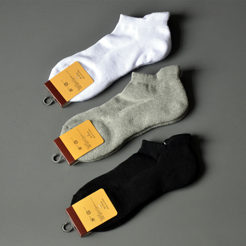 袜神出品 纯棉男士加厚毛巾底船袜子 纯黑白灰色运动毛圈短袜吸汗