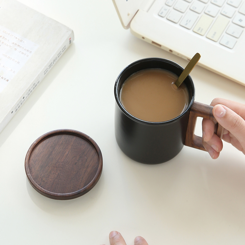 晓梨家欧式胡桃木手柄陶瓷马克杯