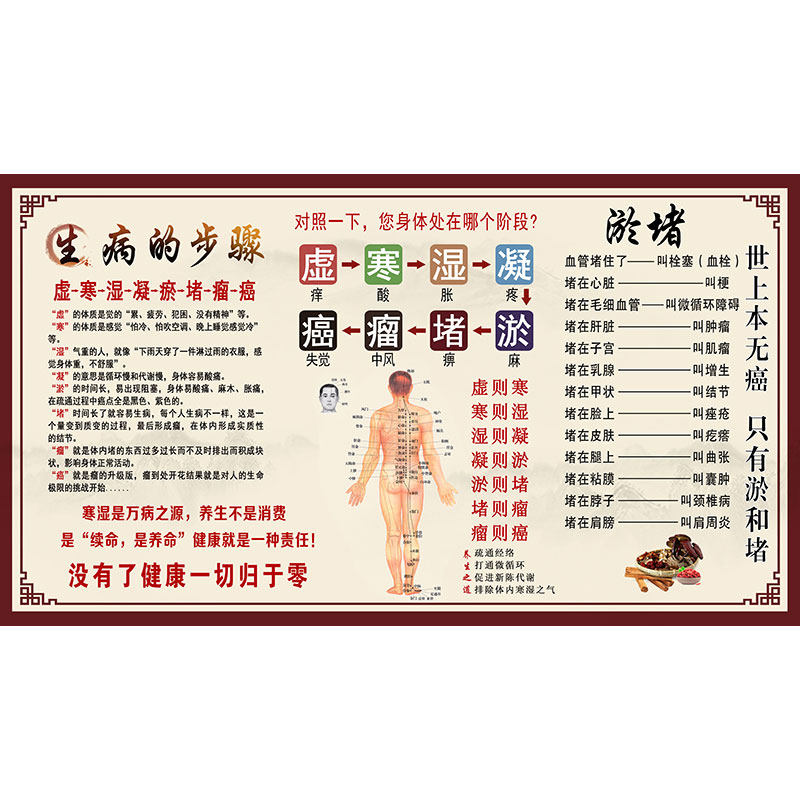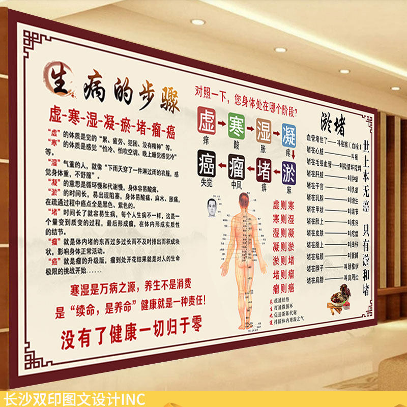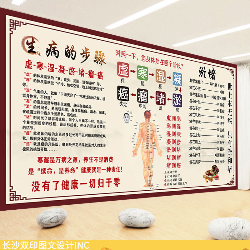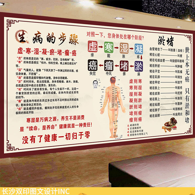 寒湿淤堵症状墙纸理疗馆背景墙装饰图中医养生调理保健知识壁画