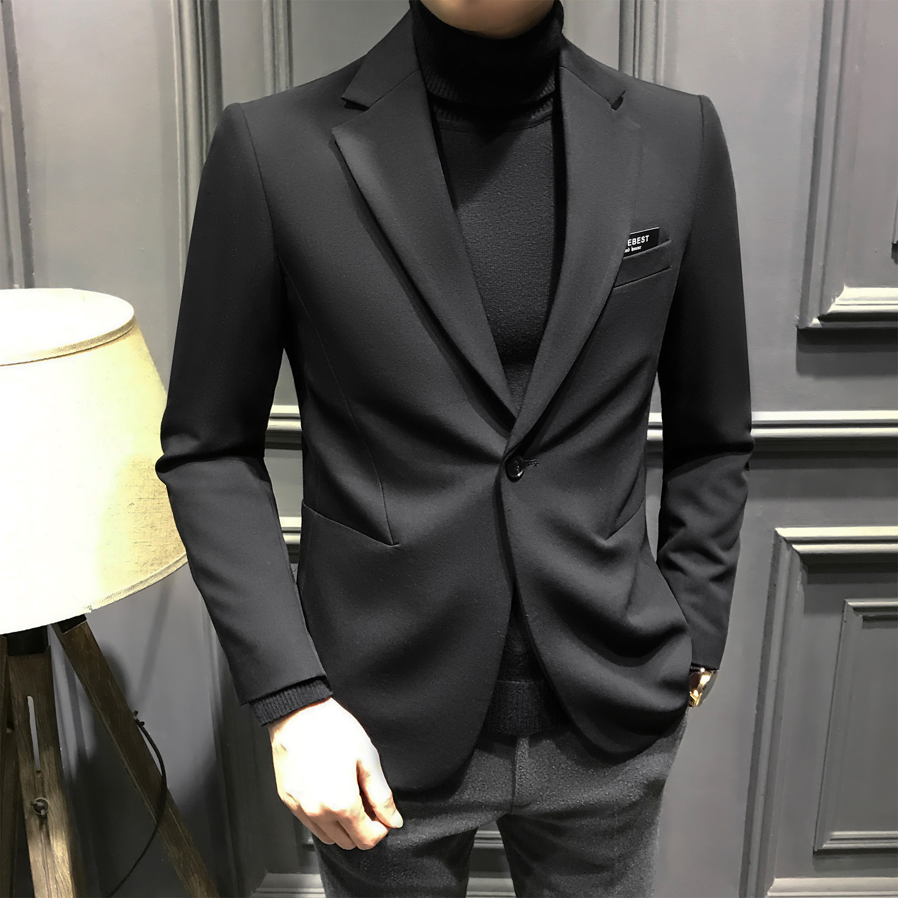 秋季高级纯色男士西服新款修身休闲西装潮流帅气单西商务外套男装