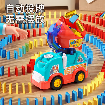 多米诺骨牌自动发放牌电动搅拌汽车儿童宝宝积木男孩女孩益智玩具