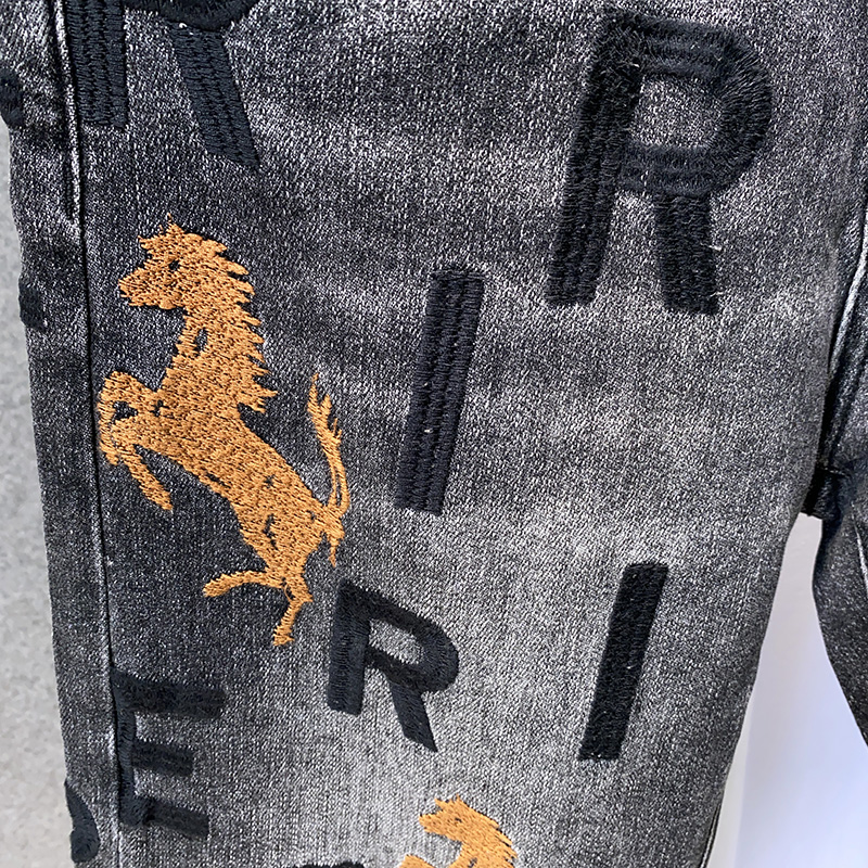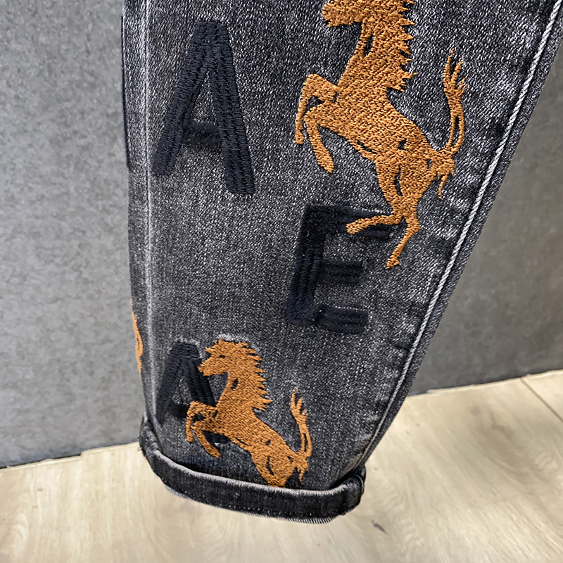 重磅全身刺绣潮牌牛仔裤男2023年新款秋冬款修身小脚男士高端裤子