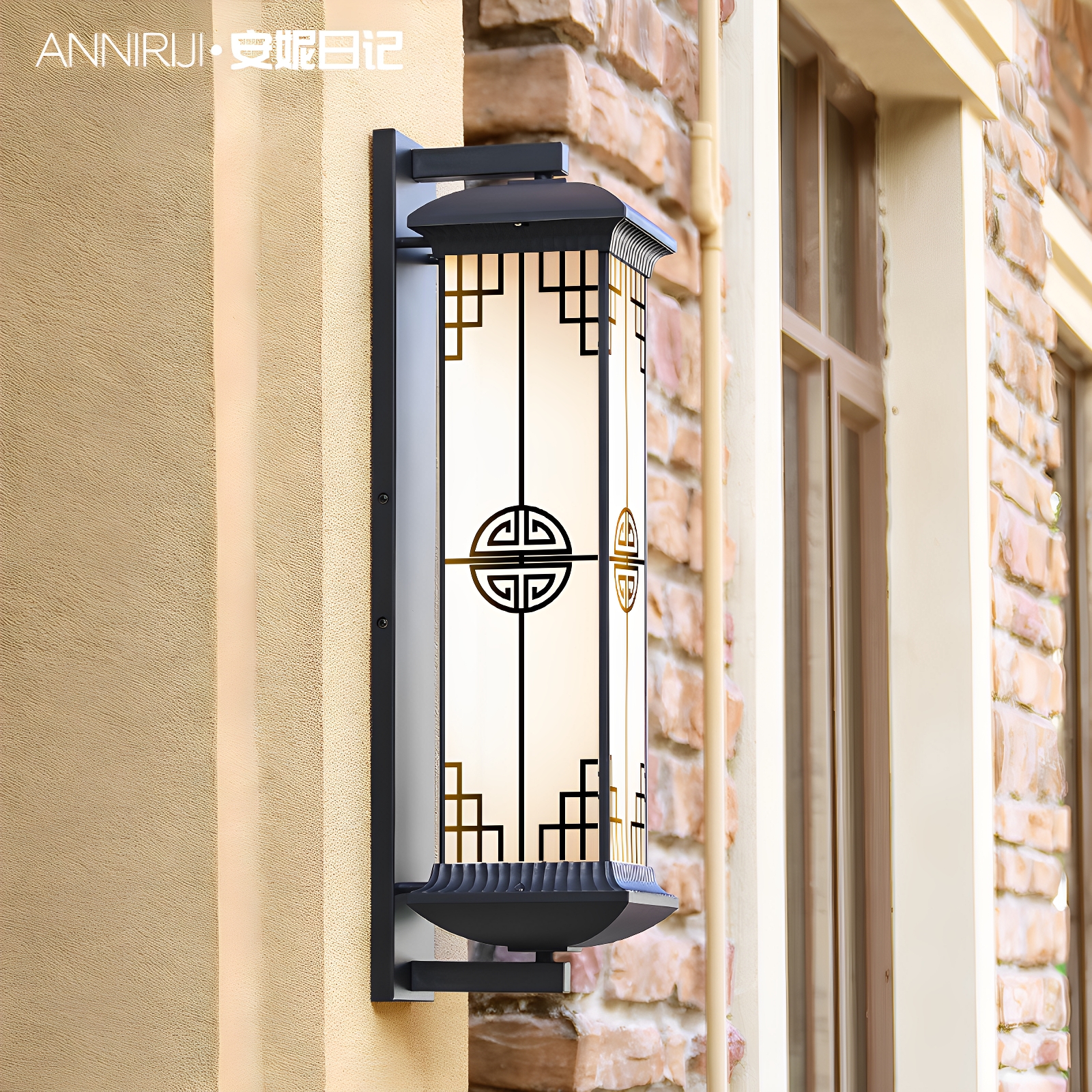 新中式太阳能壁灯户外防水别墅庭院大门口走廊过道阳台墙灯免接线