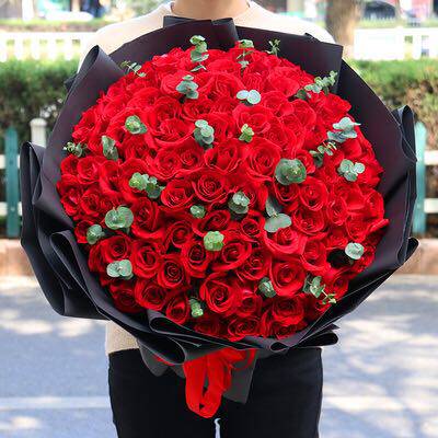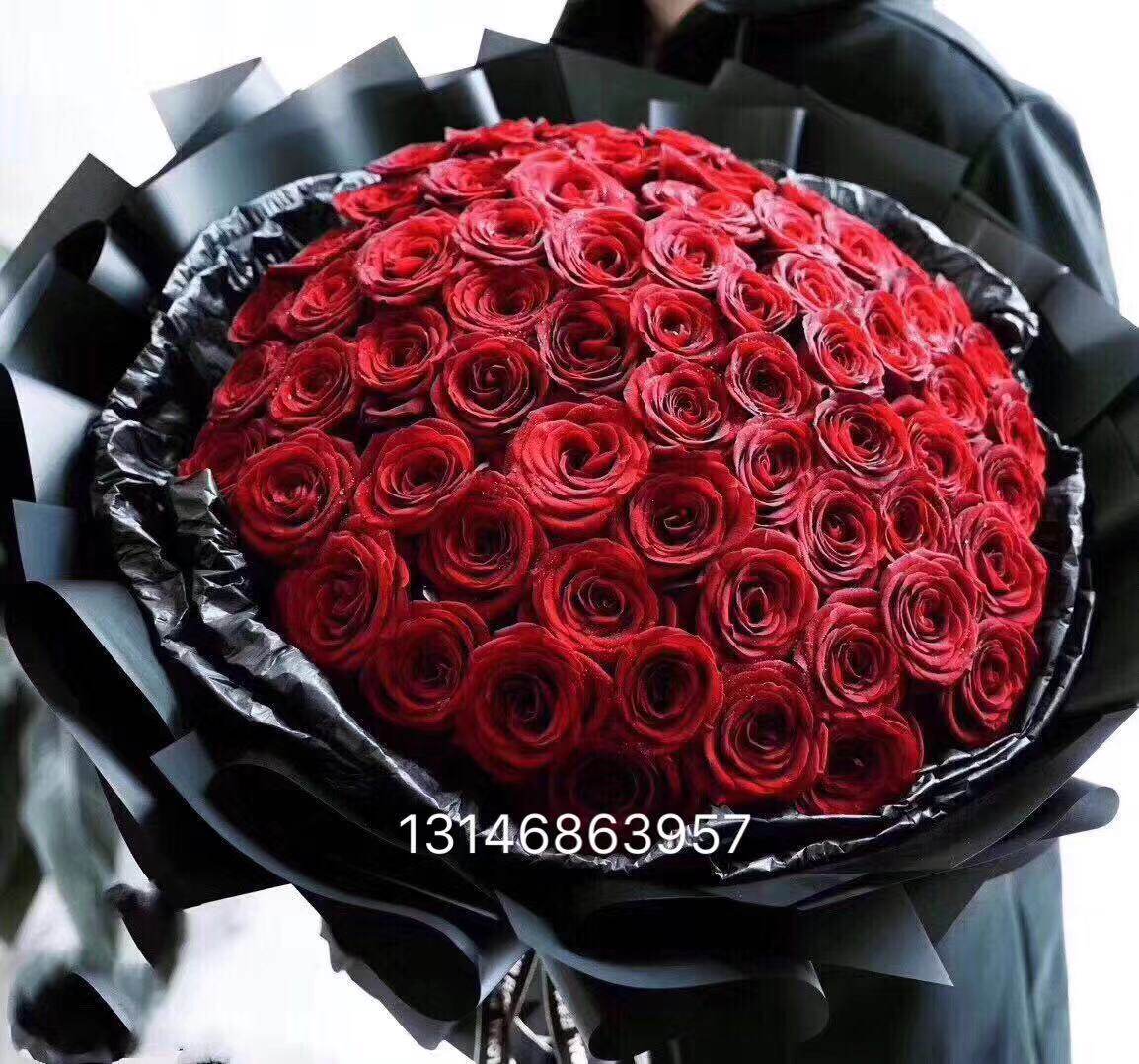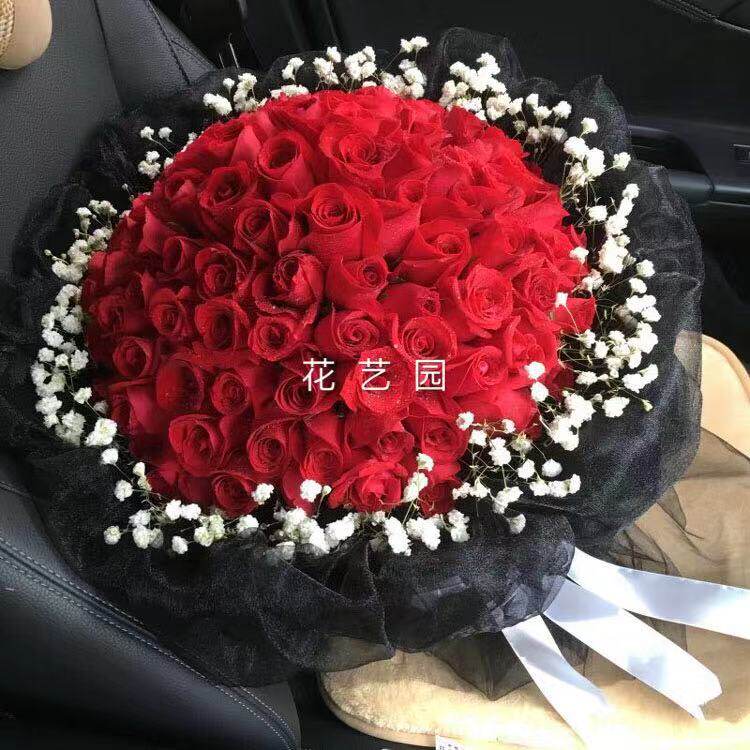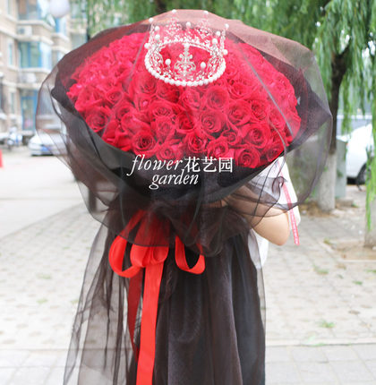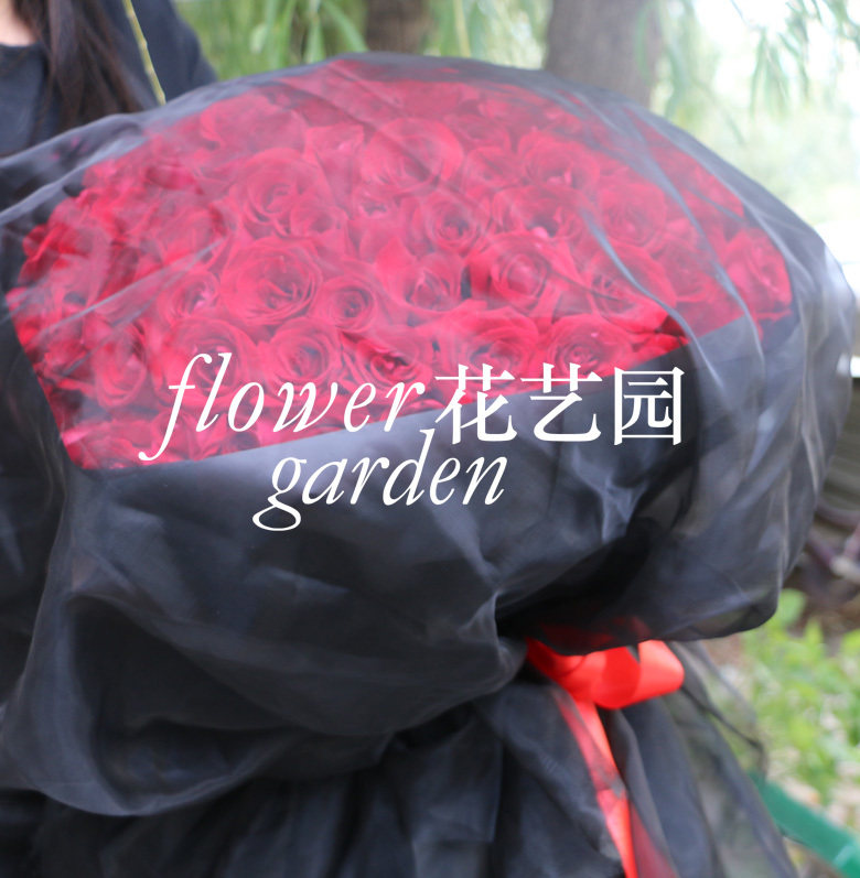 北京鲜花速递99红玫瑰黑欧根纱实拍圣诞节情人节花束纪念日鲜花