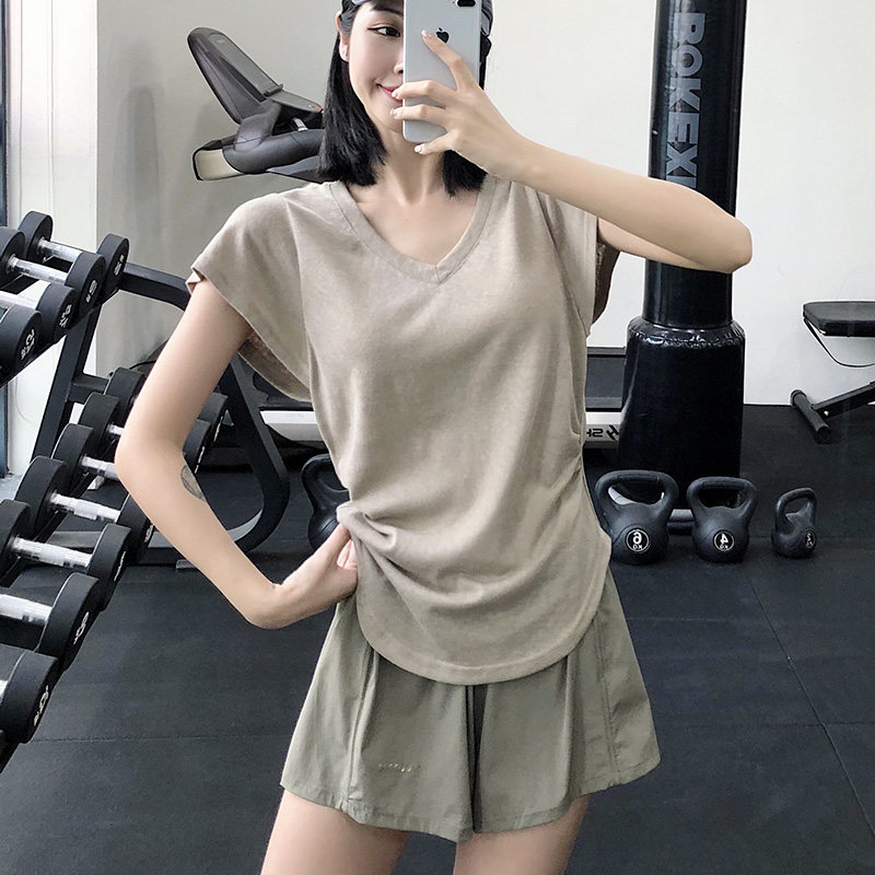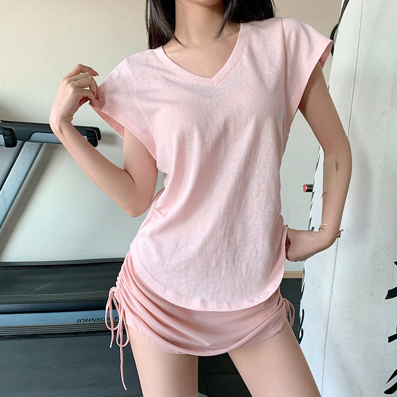 annerunV领宽松运动上衣女透气短袖T恤瑜伽服跑步速干衣健身罩衫