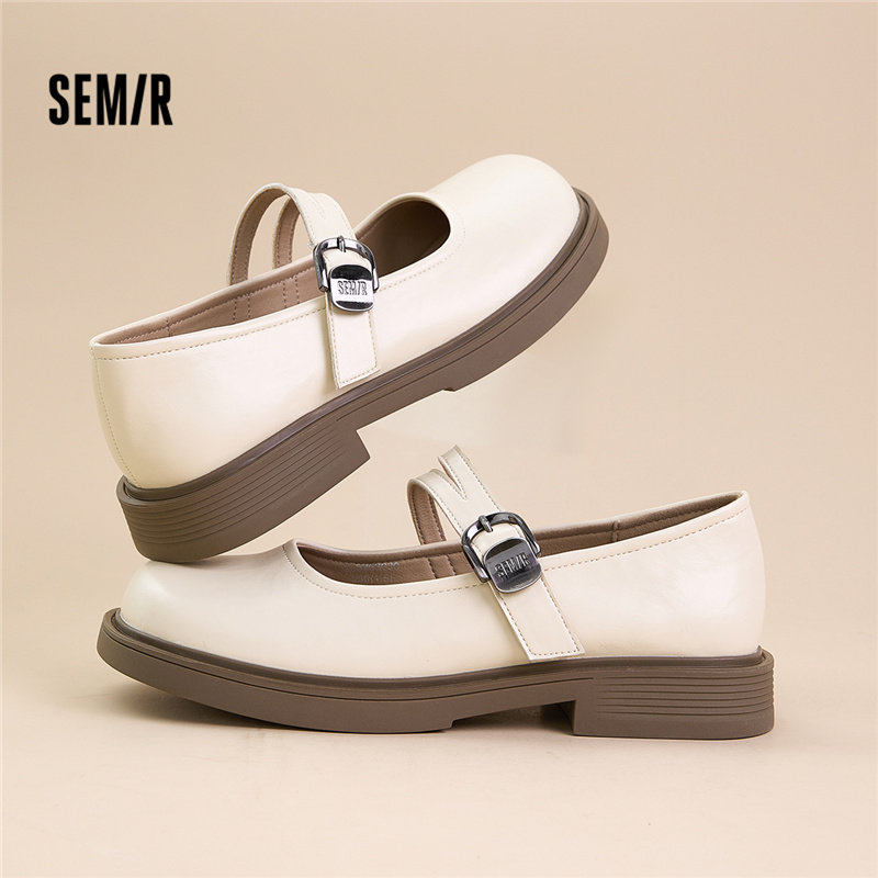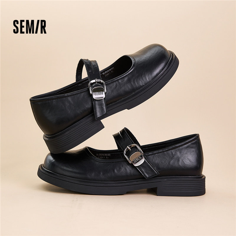 Semir女鞋玛丽珍鞋夏季2025新款浅口百搭单鞋黑色配裙子jk小皮鞋