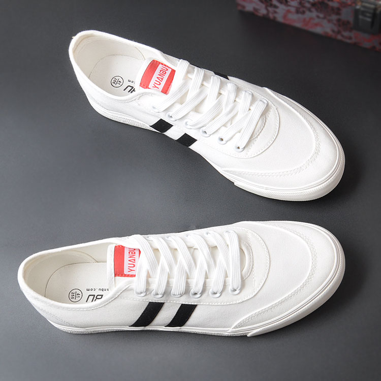 夏季新款白色帆布鞋男韩版潮流百搭系带小白鞋休闲男鞋子学生板鞋