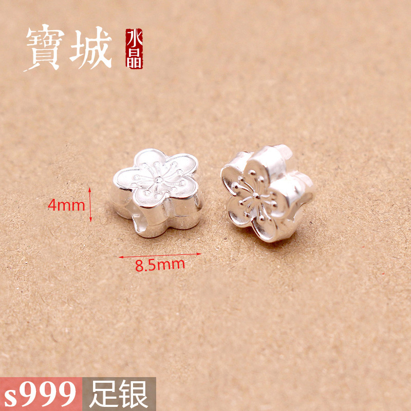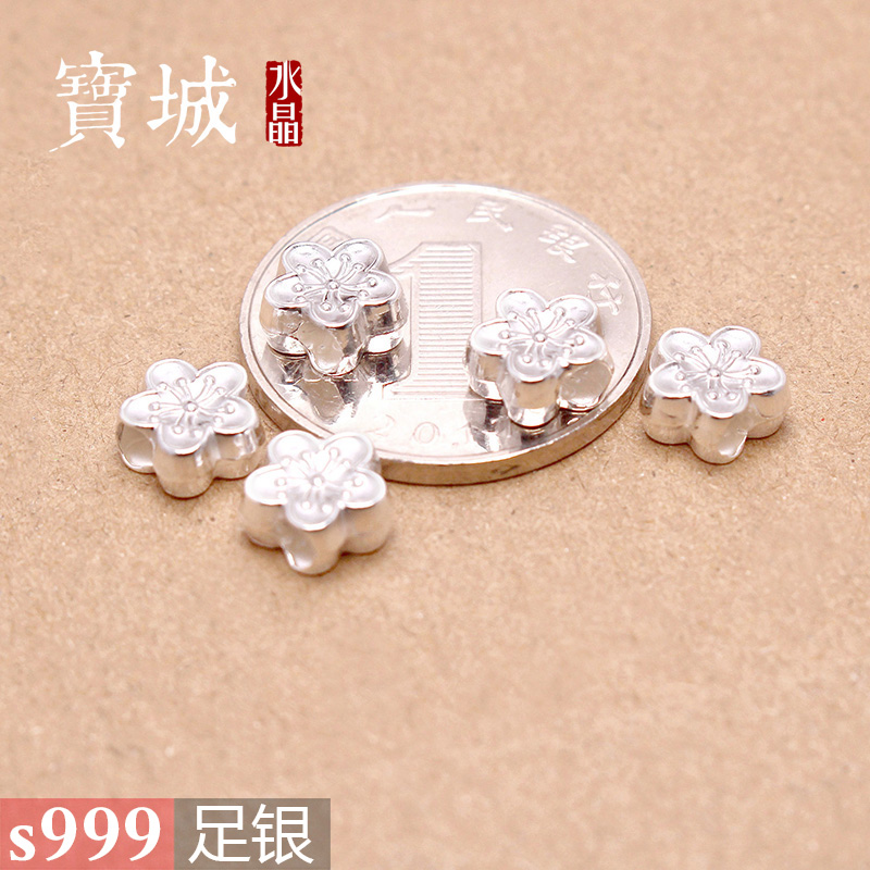 s999足银3D硬银双面桃花隔珠 DIY手工编绳手链手串饰品银配件材料