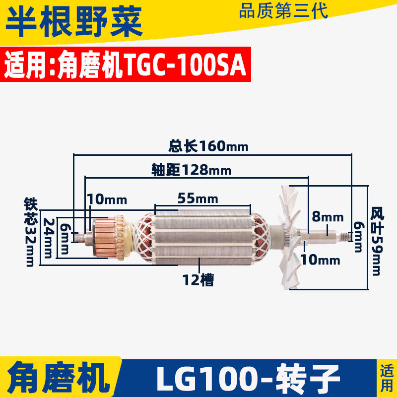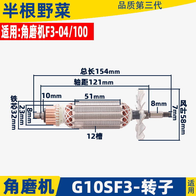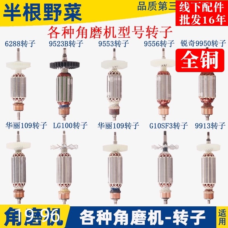 角磨机磨光机转子大全100配件通用配锐奇9913 6-100 9523 F3 9553