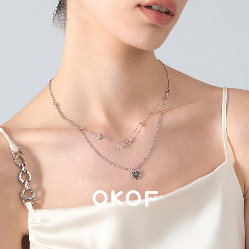 OKOF引力锁骨项链女2025新款天然闪光石高级轻奢小众情侣生日礼物
