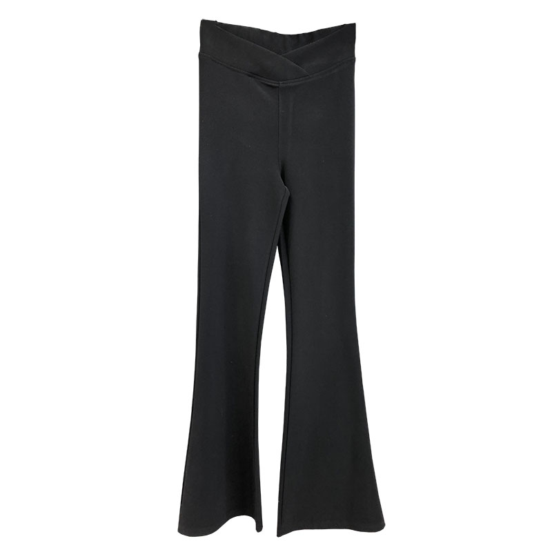 2025春季黑色西装喇叭裤女不规则V型腰修身显瘦弹力微喇裤长裤子