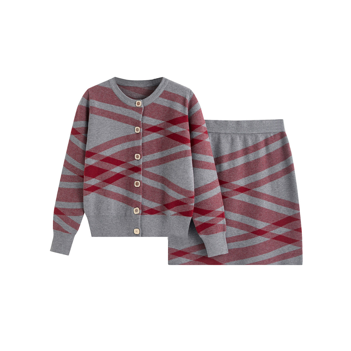名媛感时尚休闲套装女撞色开衫半身裙针织两件套装裙子