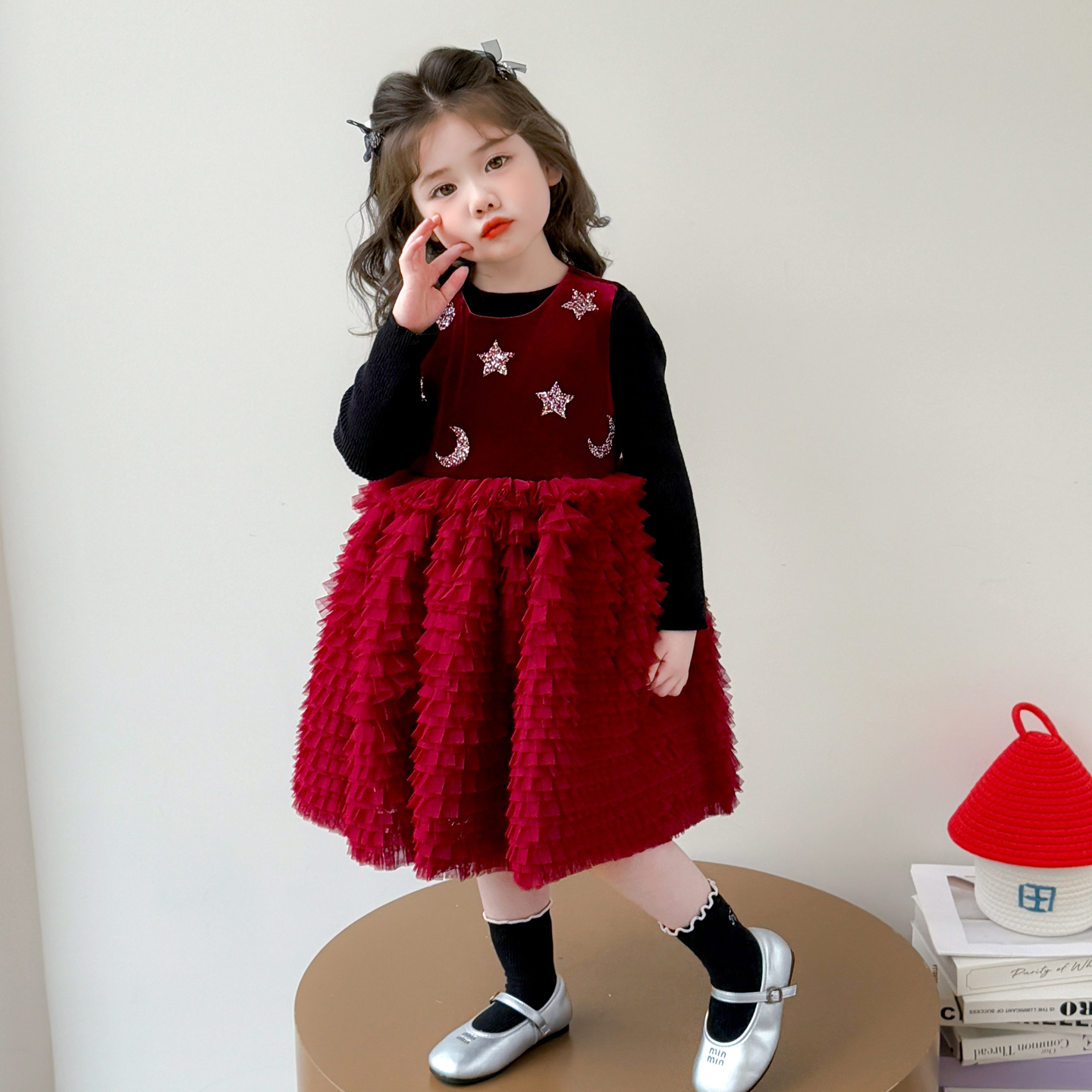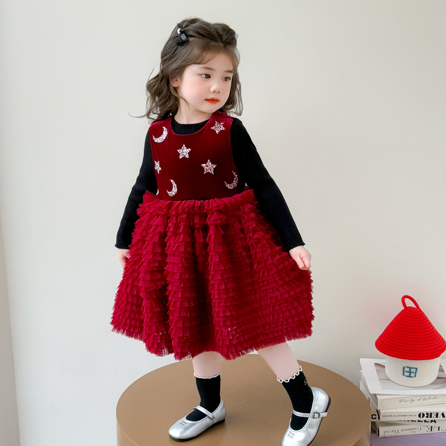 秋季小女孩长袖蓬蓬纱公主裙