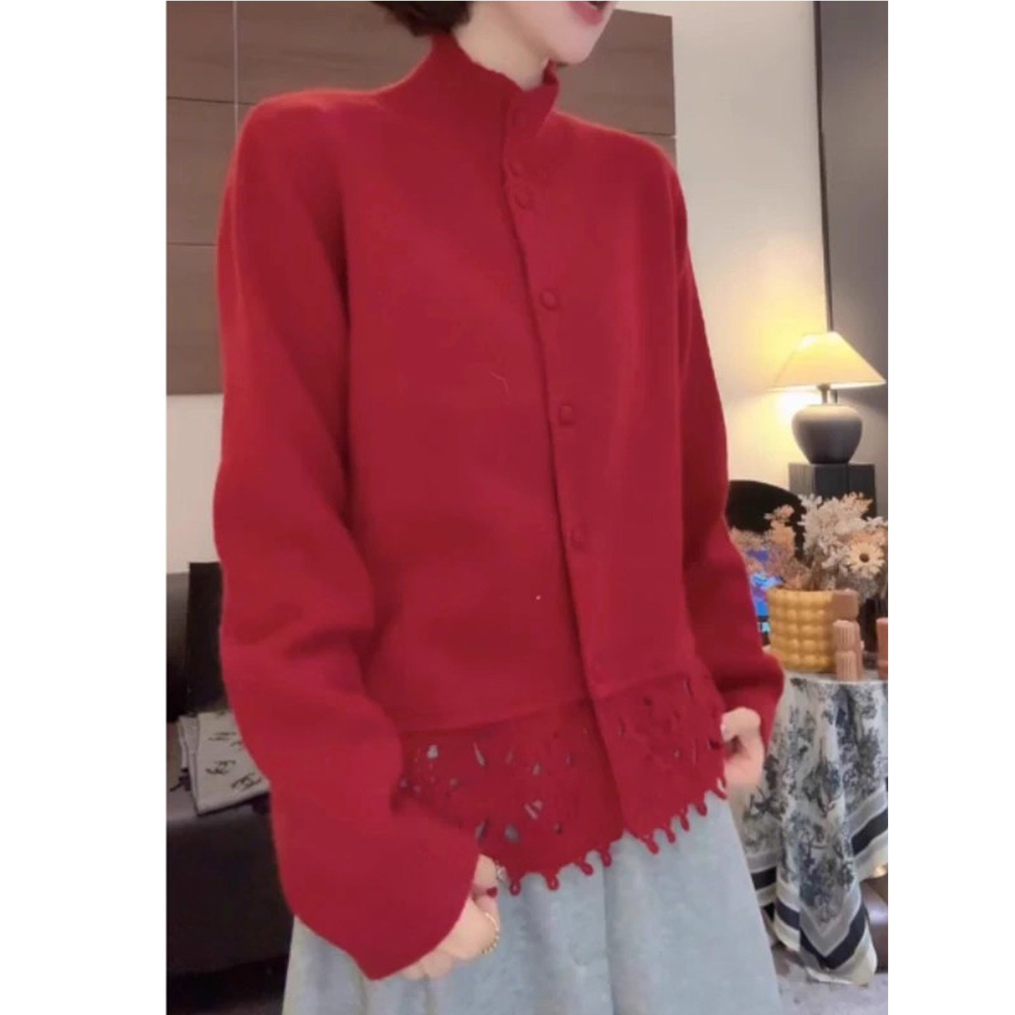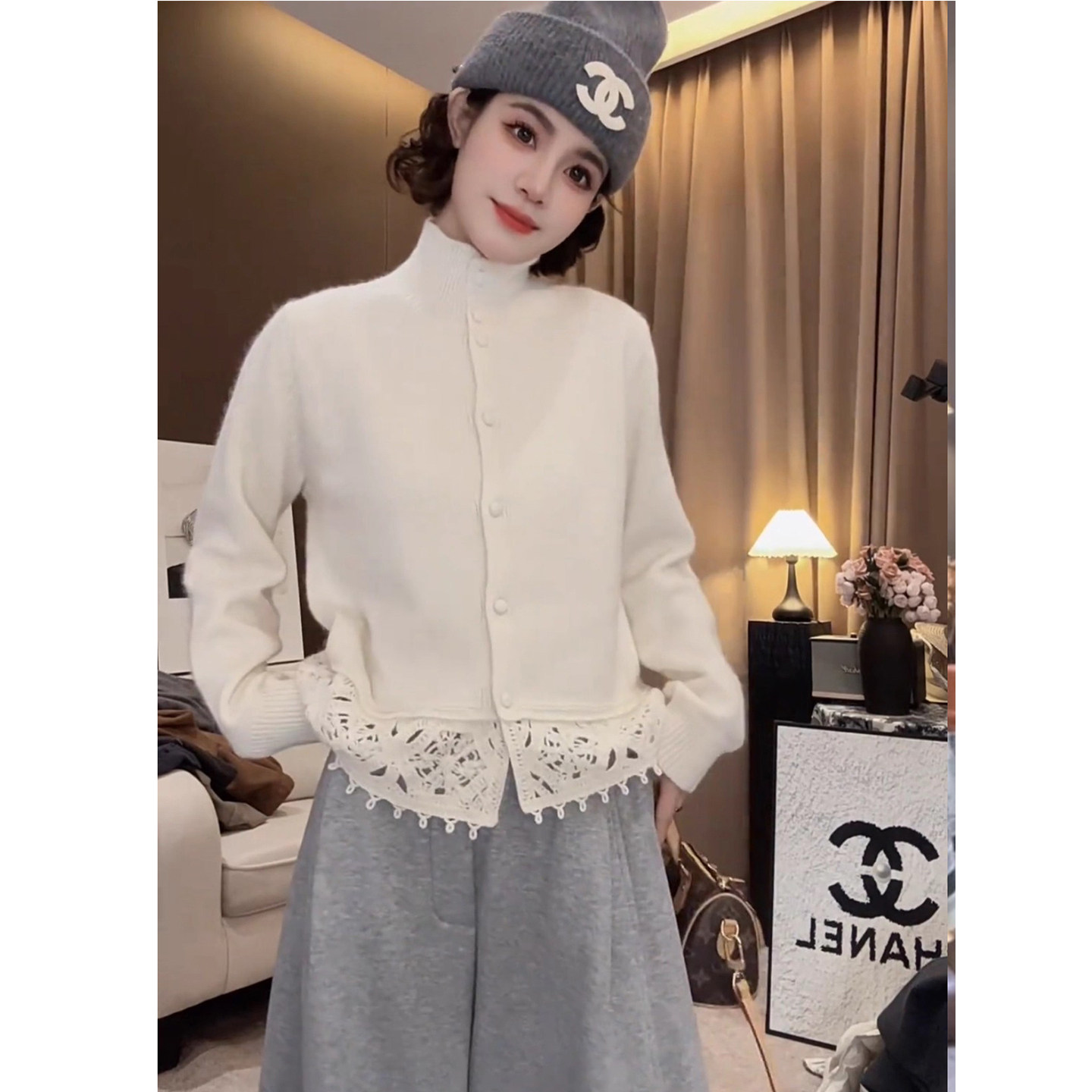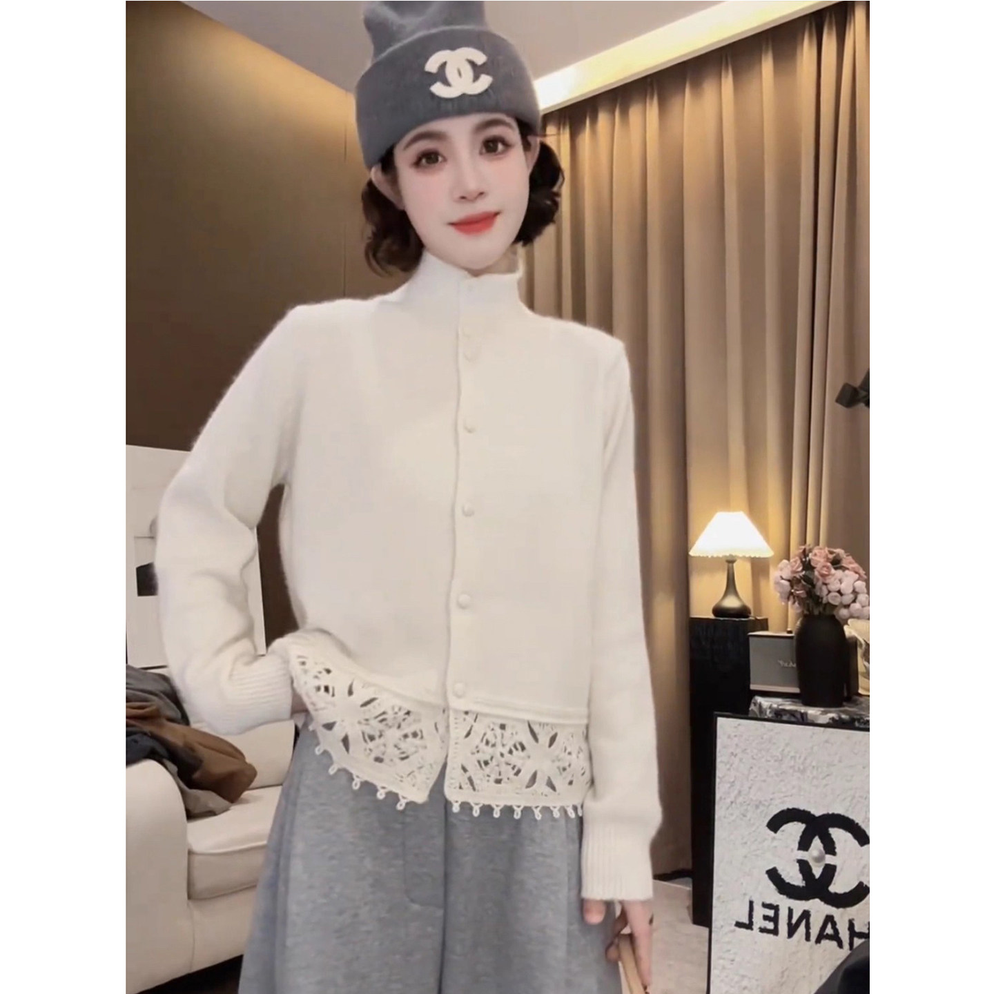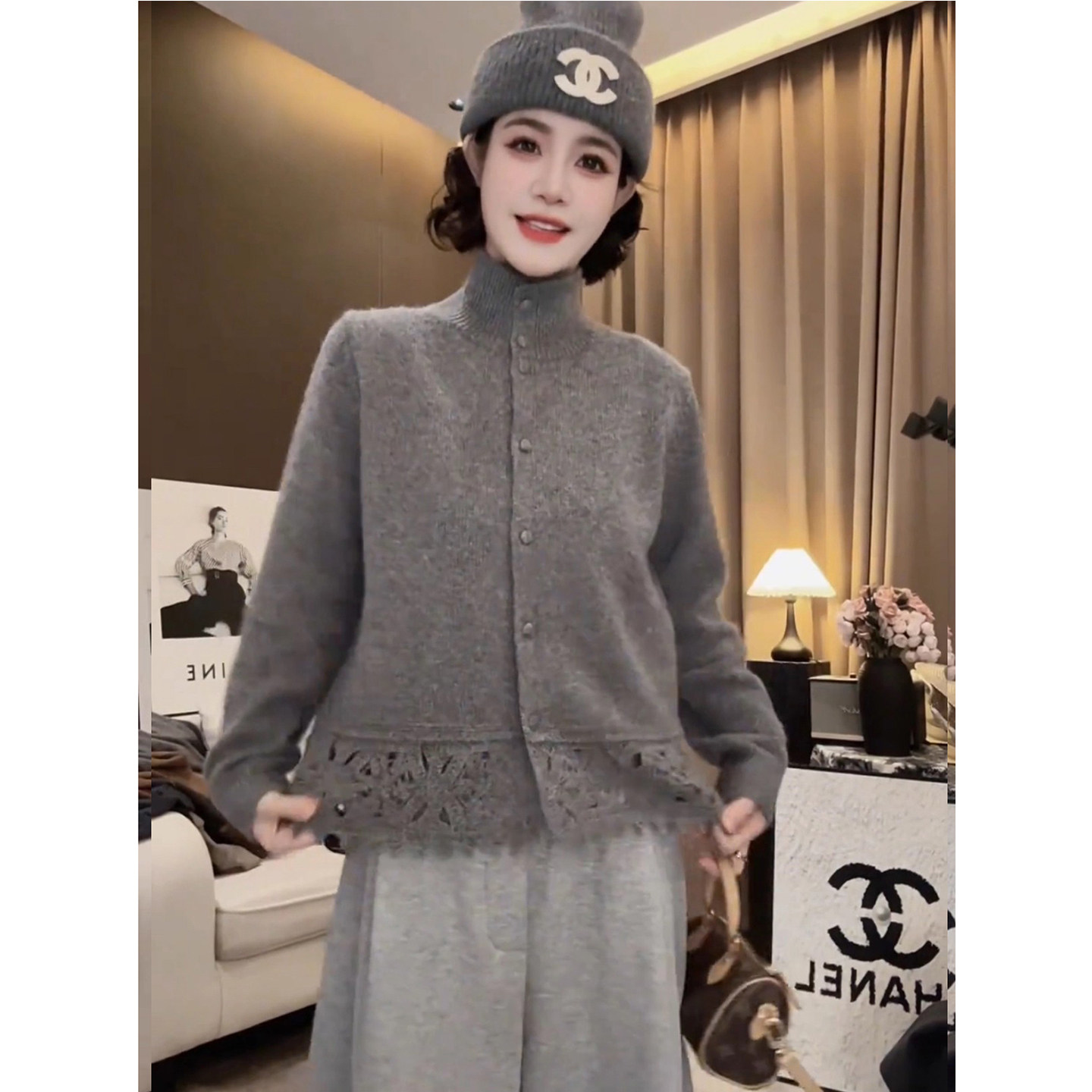 灰色半高领镂空毛衣开衫女秋冬针织打底衫2025年新款韩系减龄上衣