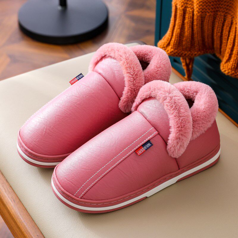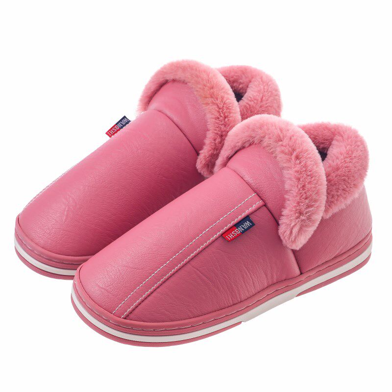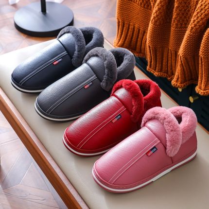 情侣棉拖鞋女防水厚底冬季居家室内防滑地板保暖包跟家用皮拖鞋男