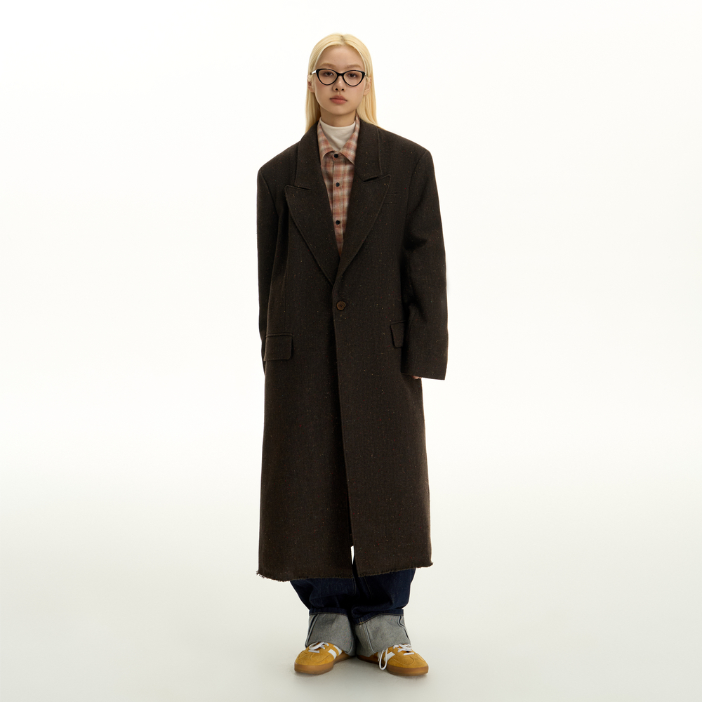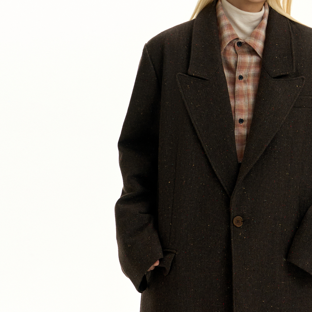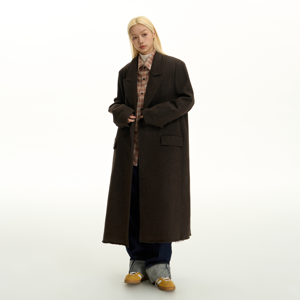 TGNS戗驳领毛呢花纱中长款大衣女秋冬美拉德呢子高级感廓形外套男