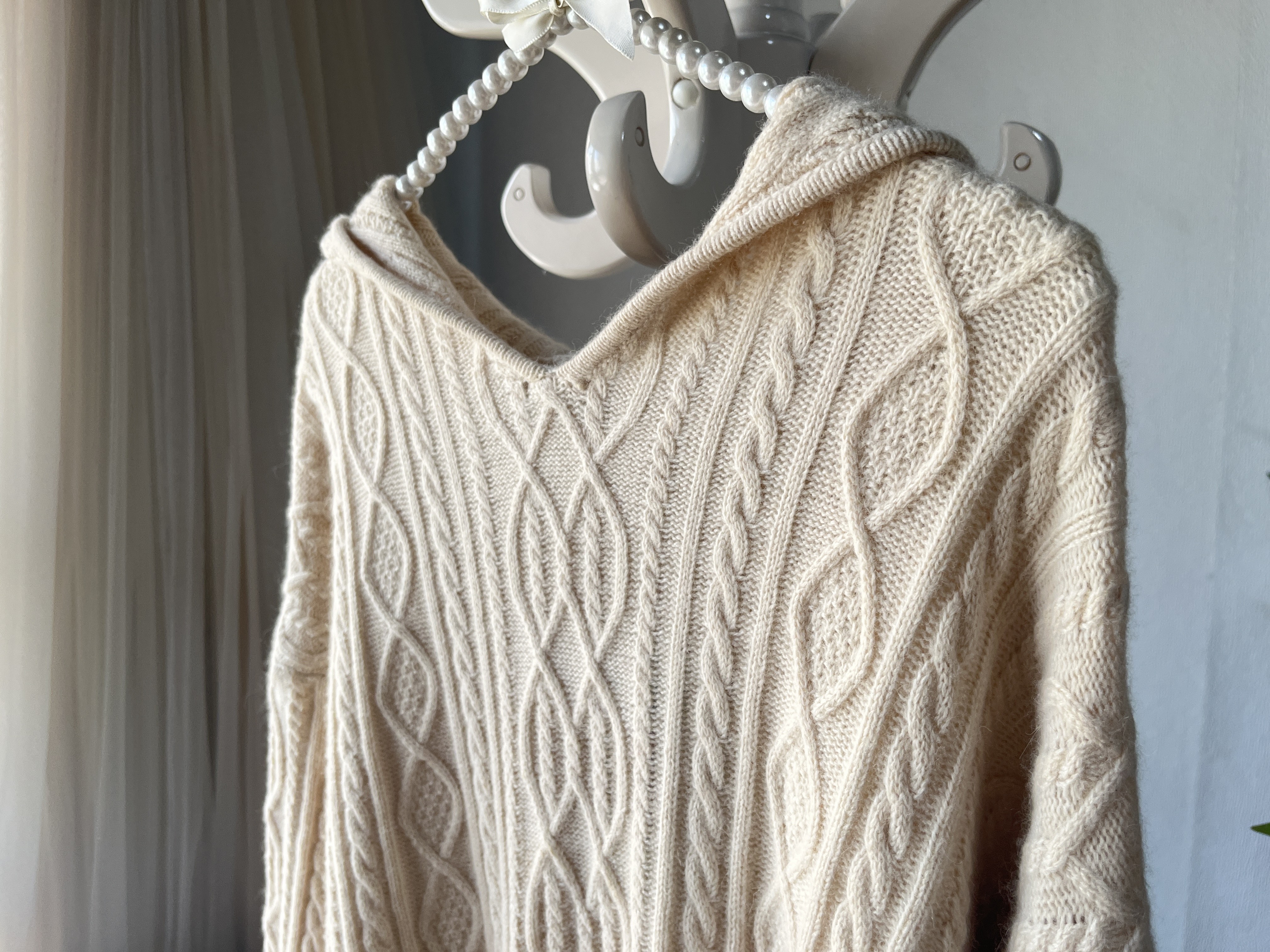 米黄色连帽长毛兔毛毛衣麻花编织中长款连衣裙女秋冬新款宽松套头