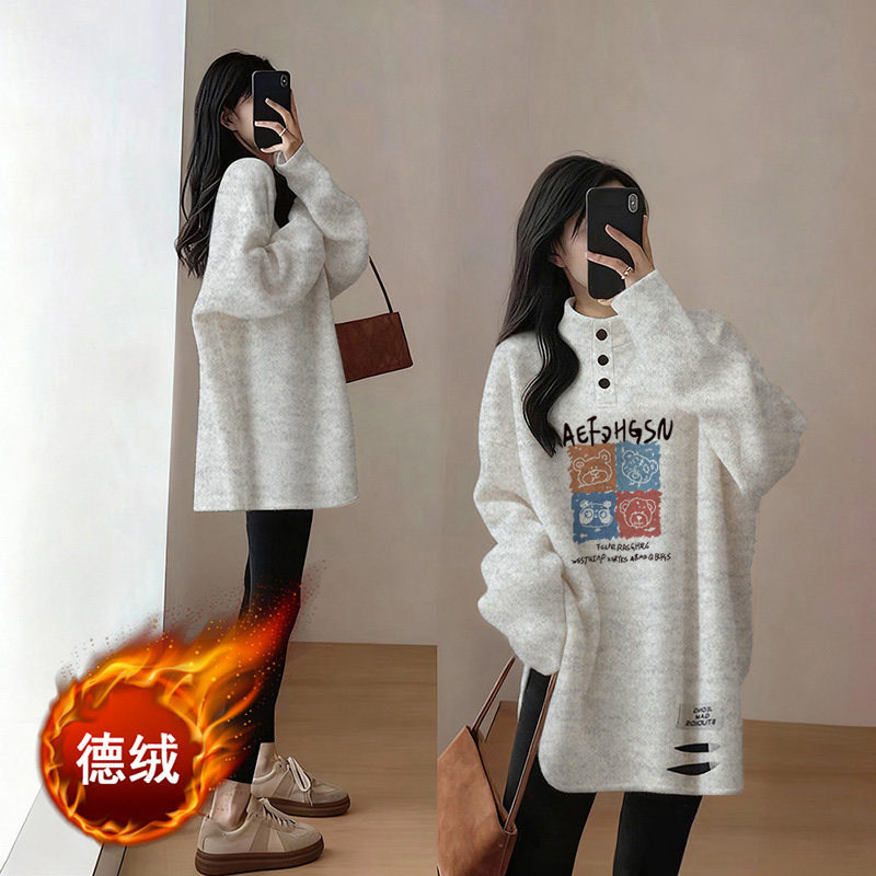 德绒打底衫女春秋大码胖mm女装加绒加厚长袖t恤中长款内搭上衣女