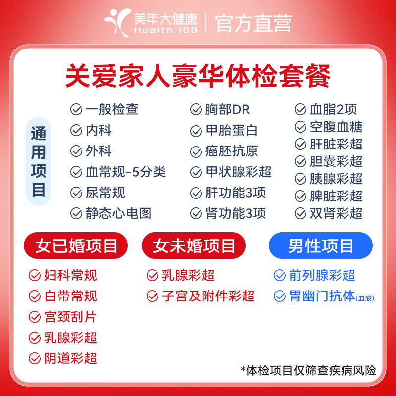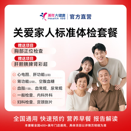 美年大健康关爱家人单人体检套餐 父母成人男女全国400+分院通用