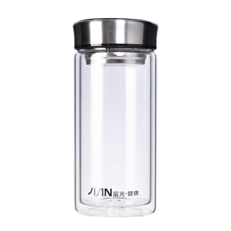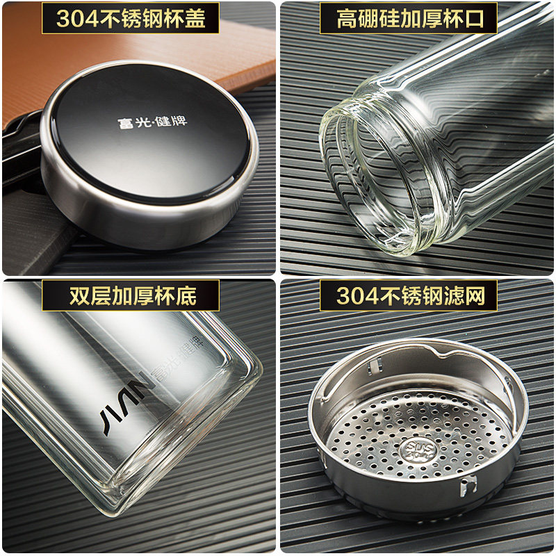 富光双层玻璃杯大容量 男士便携水杯车载办公家用带滤网泡茶杯子