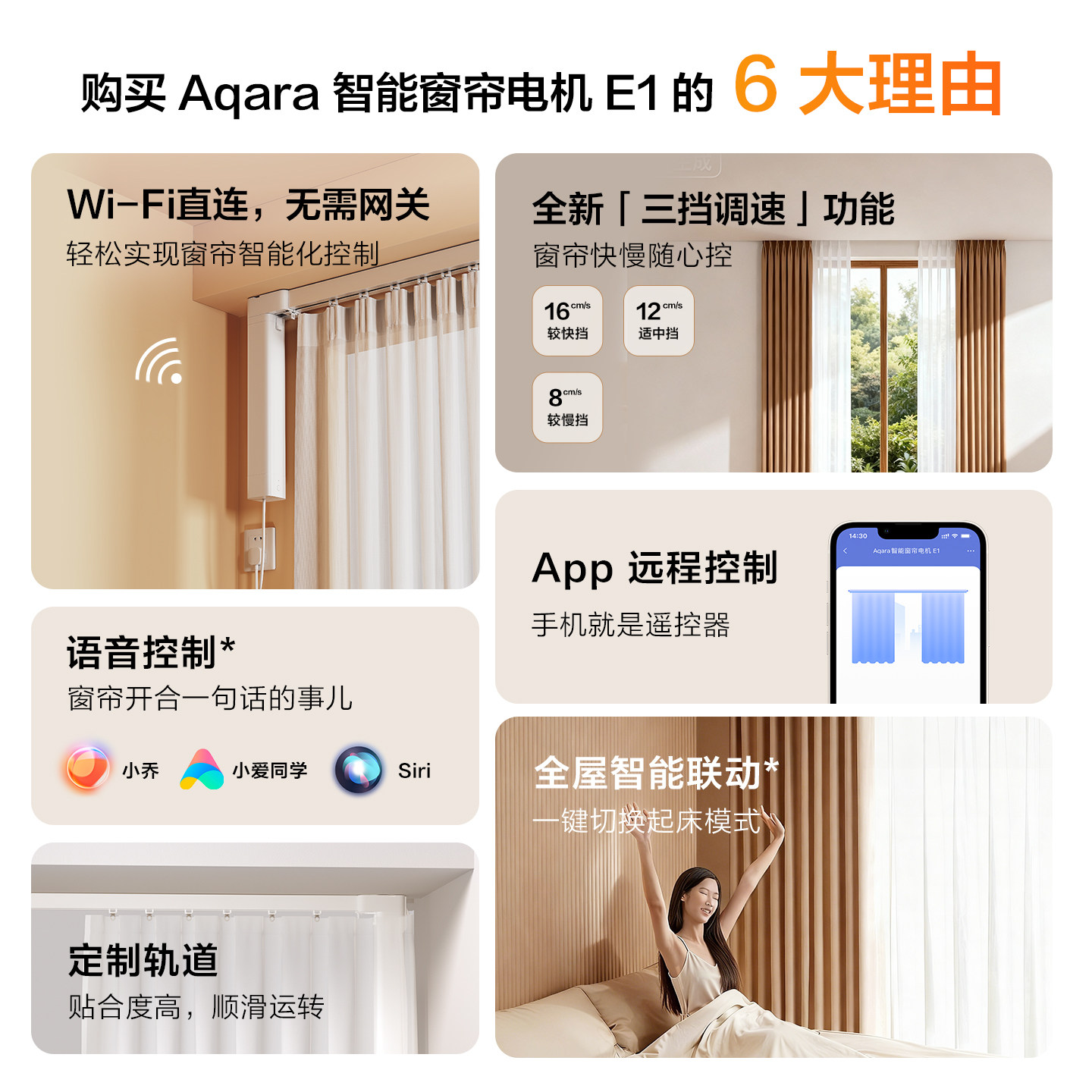 Aqara绿米智能窗帘电机E1成品帘已接入米家全自动轨道电动窗帘