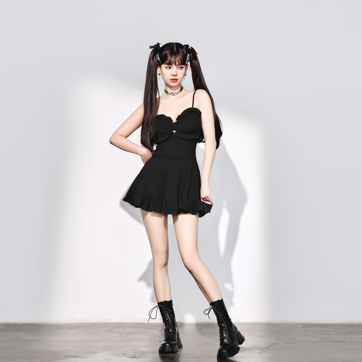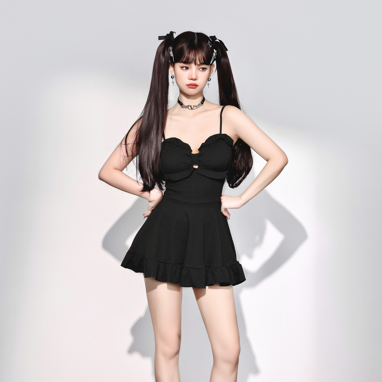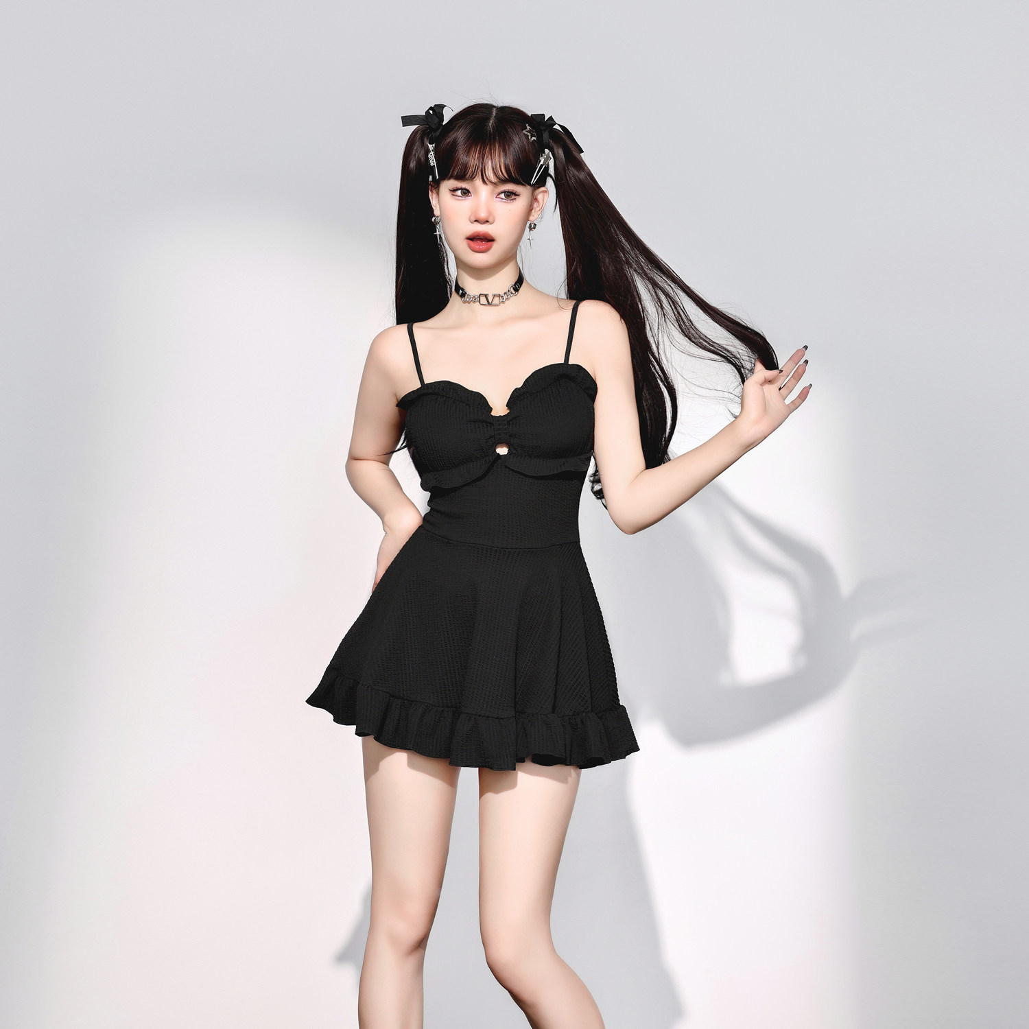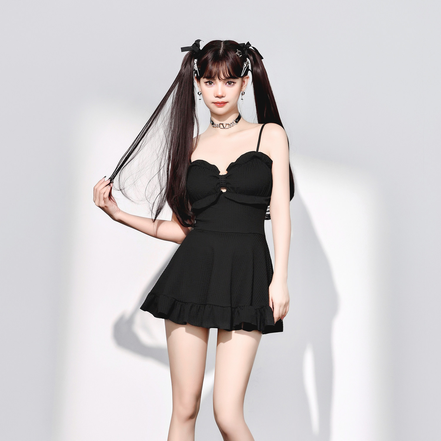 少年齐原创 2024新款蝴蝶结显胸保守显瘦遮肚温泉连体裙女游泳衣
