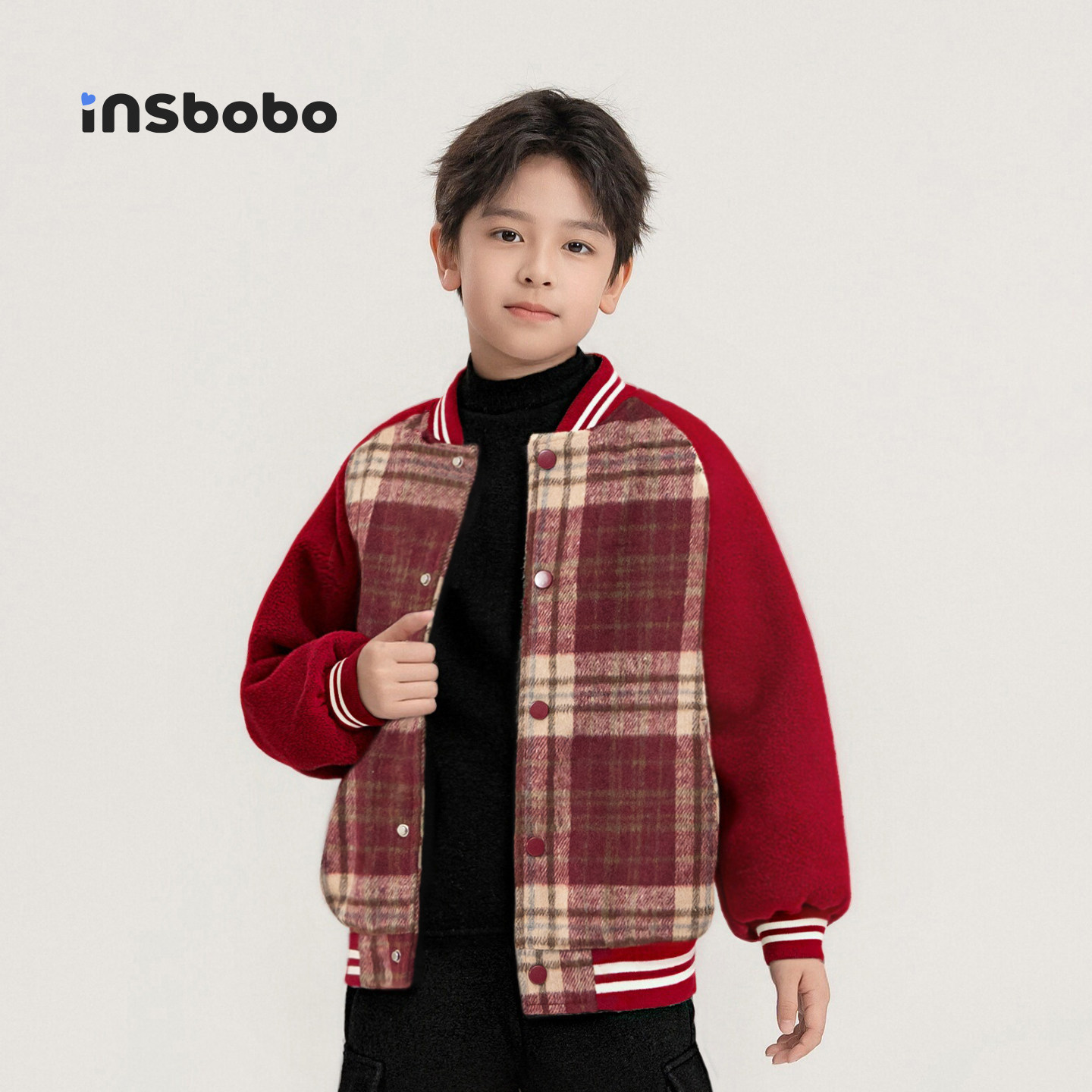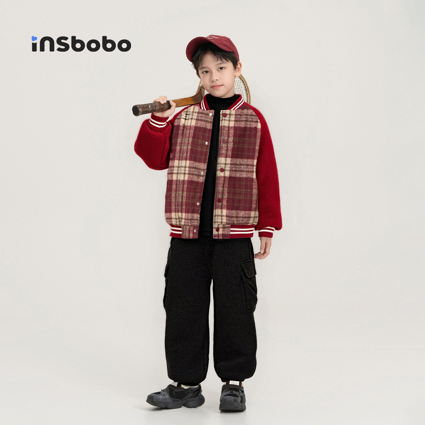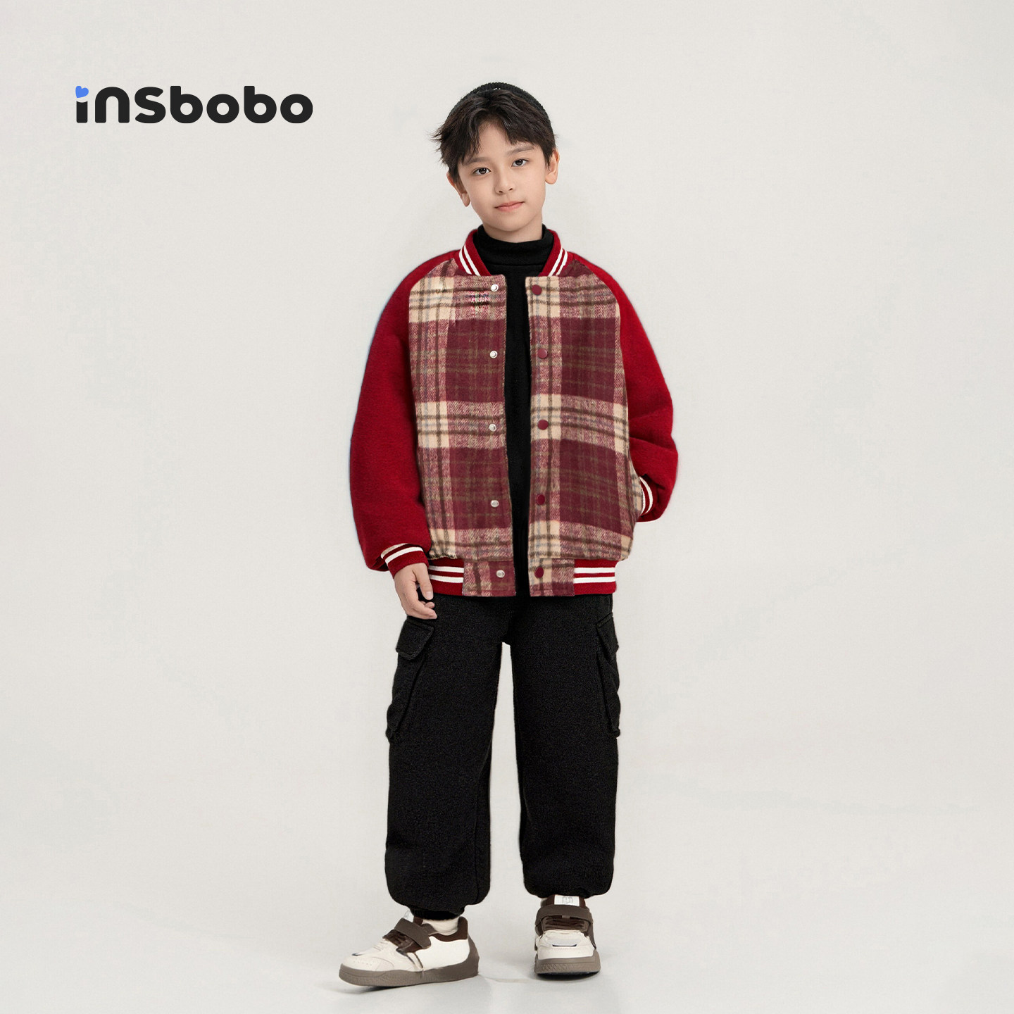 男童红色外套儿童夹棉棒球服冬装拜年服大童棉服上衣童装过年衣服
