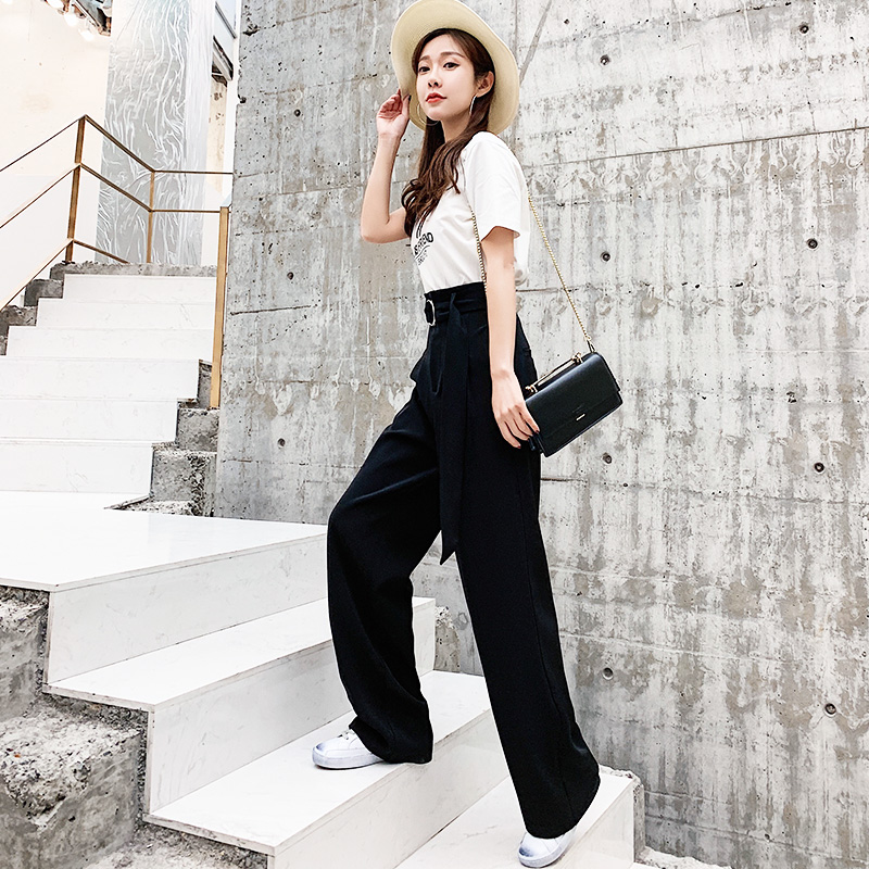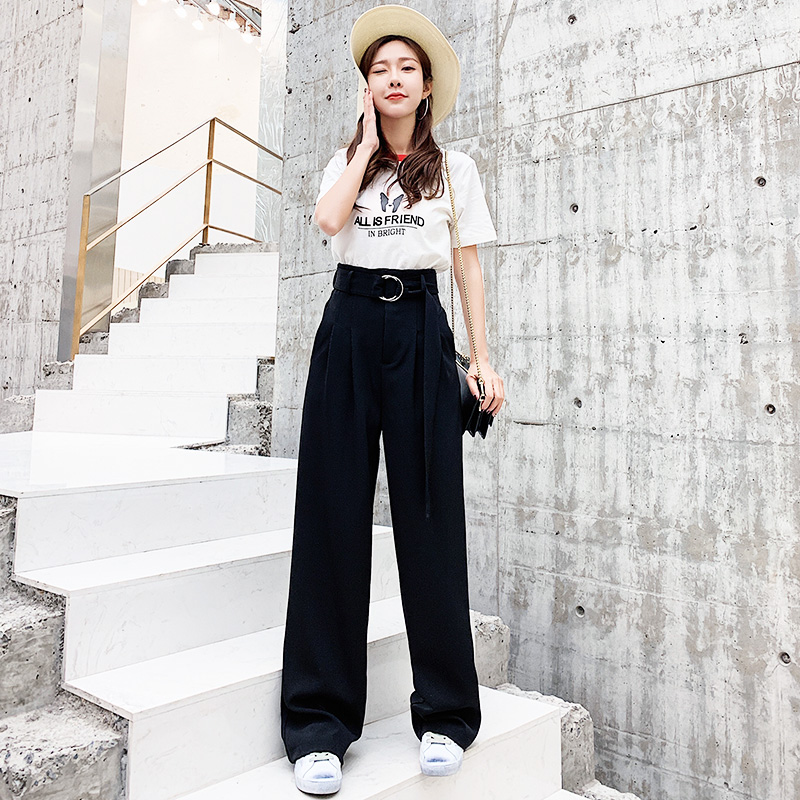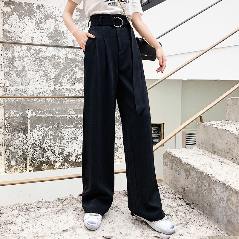 西装坠感阔腿裤女直筒花苞高腰宽松春秋显瘦洋气垂感百搭拖地长裤