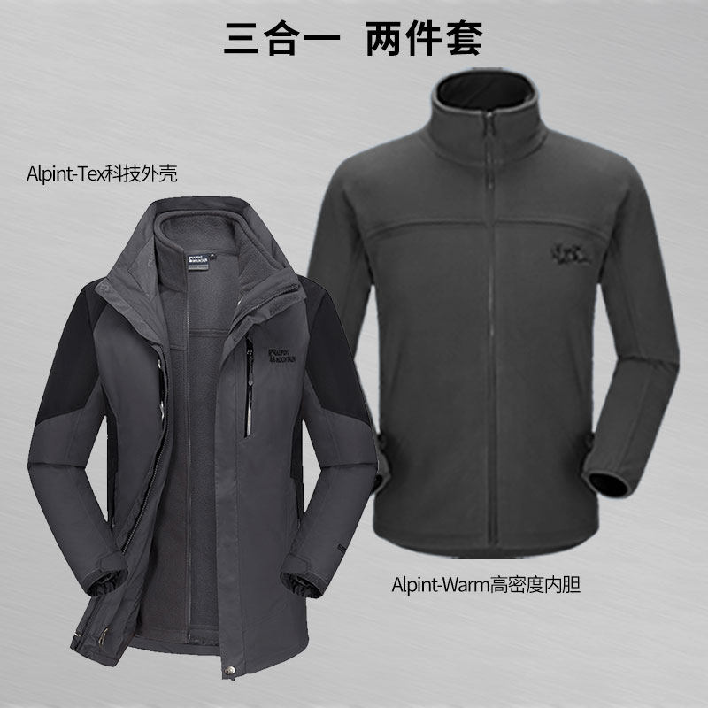 埃尔蒙特冲锋衣男款秋冬新款户外三合一加绒加厚冬季外套女士内胆