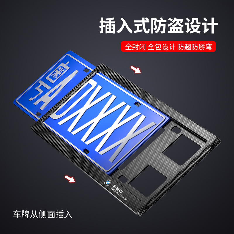 宝马车牌边框3/4/5系车牌保护框ix3X5X6碳纤纹车牌架牌照架框套罩