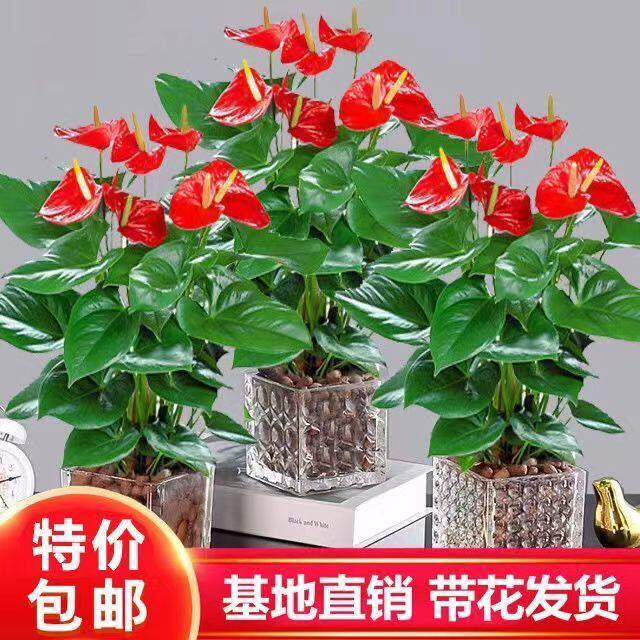 【带花发货】红掌粉掌白掌花室内水培土培盆栽四季开花卉植物绿植