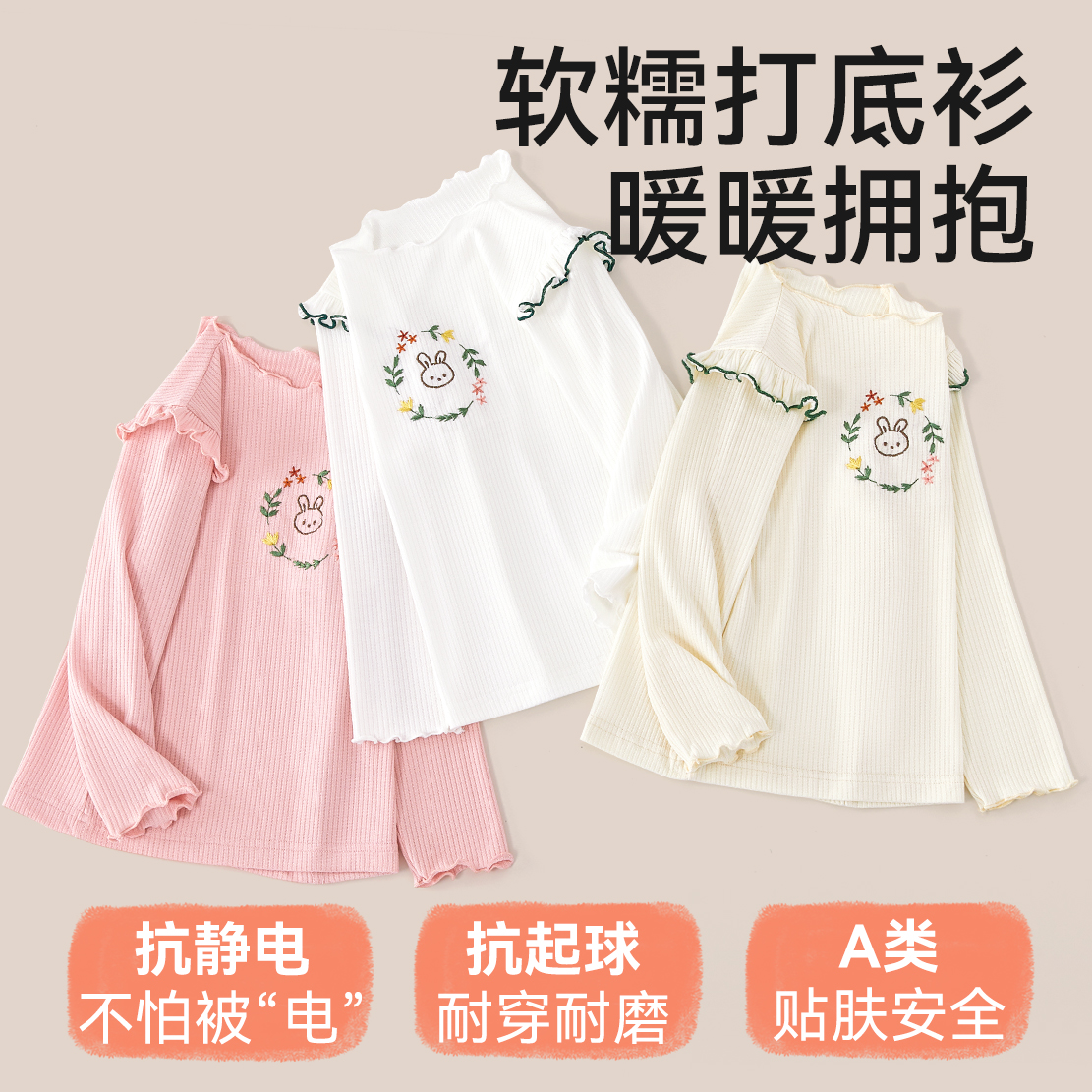 女童打底衫春秋保暖儿童长袖T恤2025新款纯棉秋衣大童半高领上衣