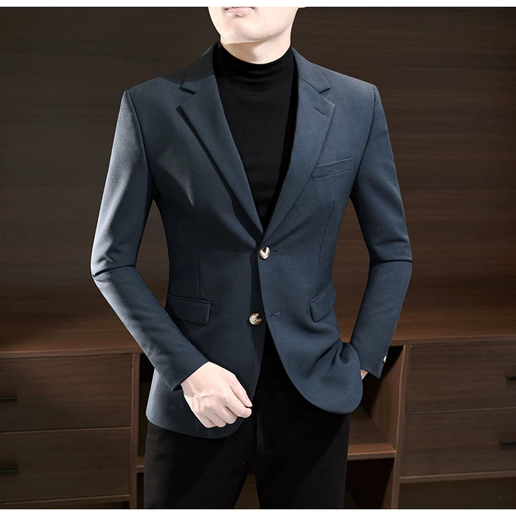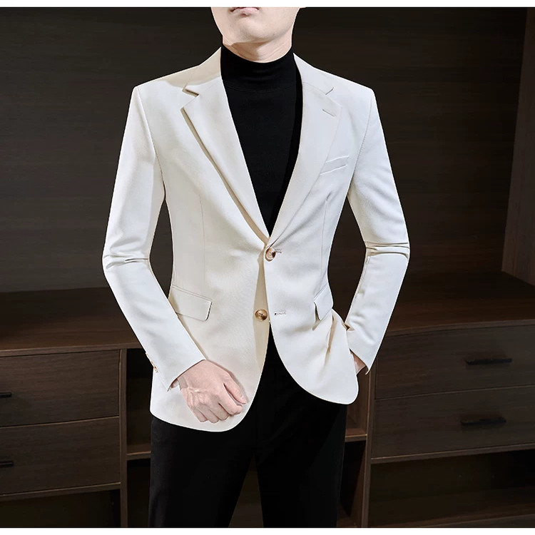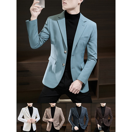 法式垫肩小西服男高级感修身单西便服职业正装免烫西装绅士薄外套