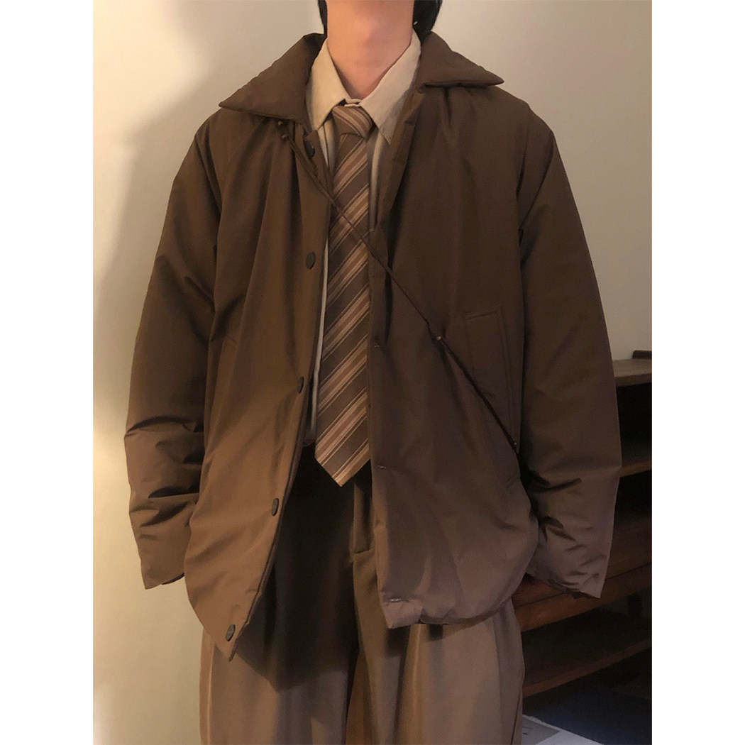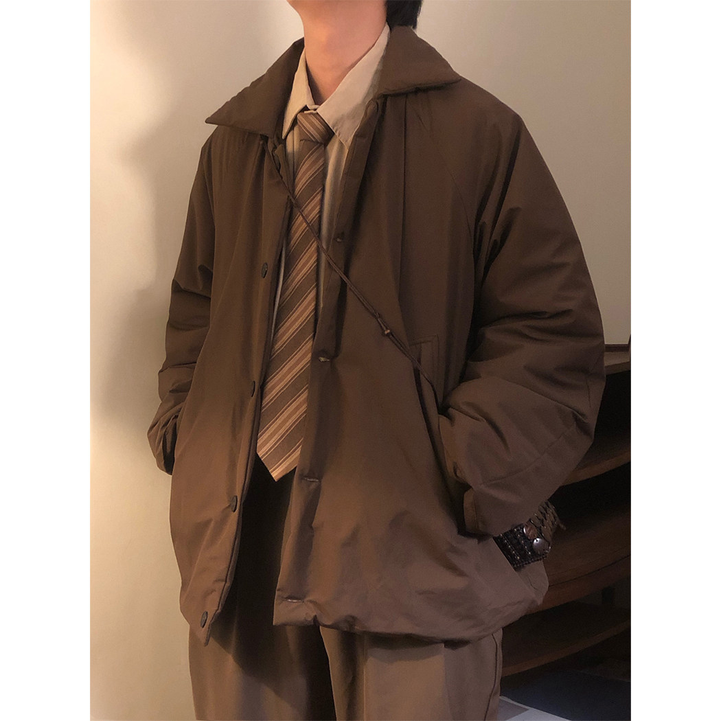 NAGAWL冬季新款宽松美式复古潮牌翻领加厚棉服外套男港风简约棉衣