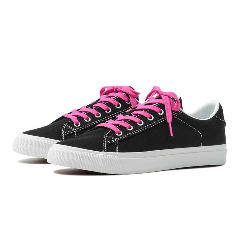 极路客 黑白粉色鞋带鞋子 男女款低帮百搭情侣运动板鞋减震滑板鞋
