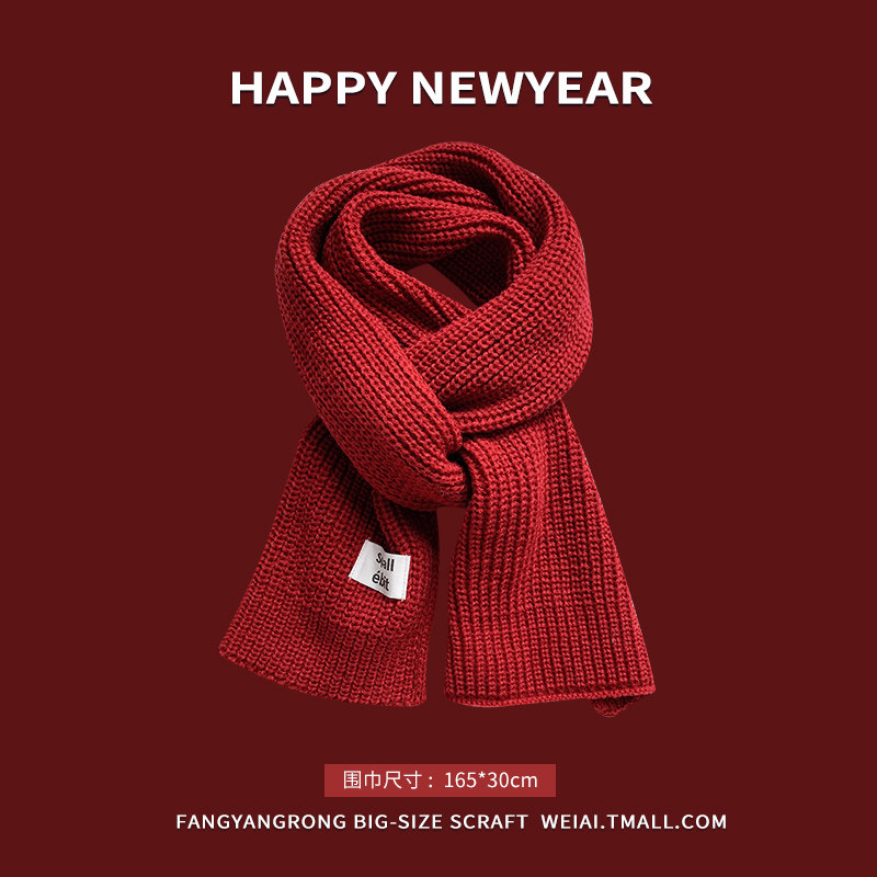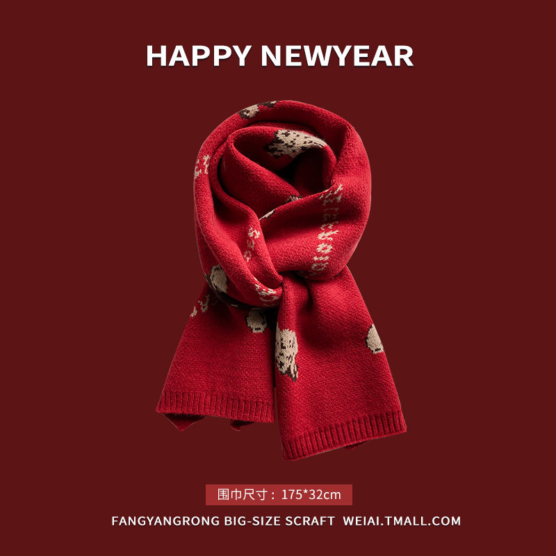过年红色新年围巾女冬季圣诞针织毛线围脖韩版百搭加厚保暖学生潮