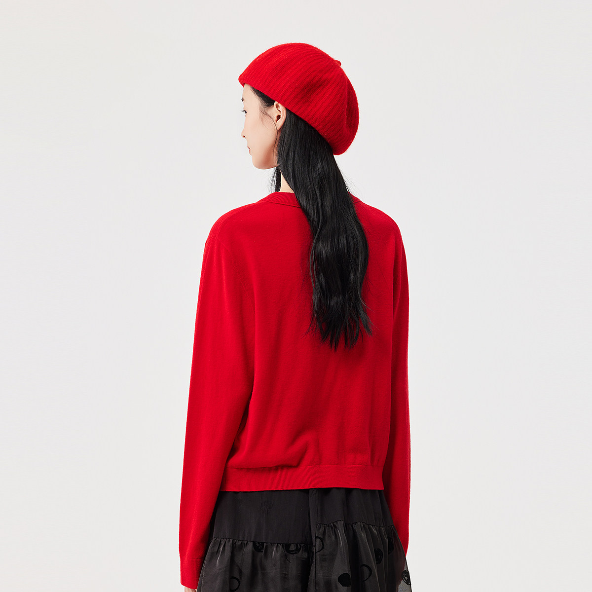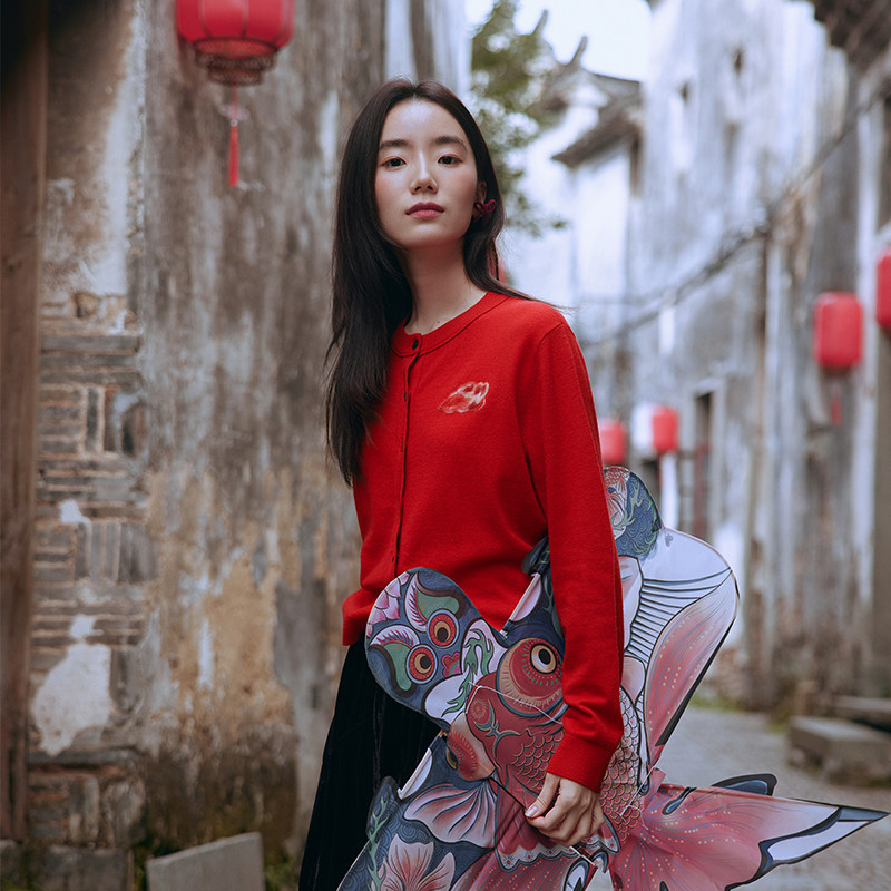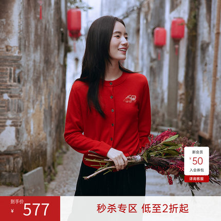 飞鸟和新酒商场同款2025春季新款红色开衫女羊毛衫FJ510034004