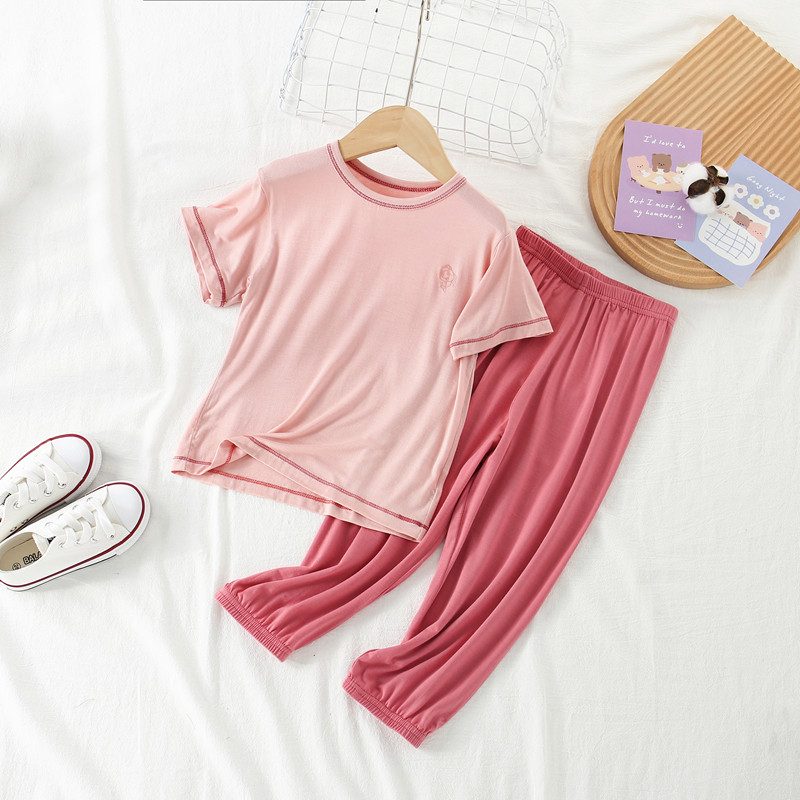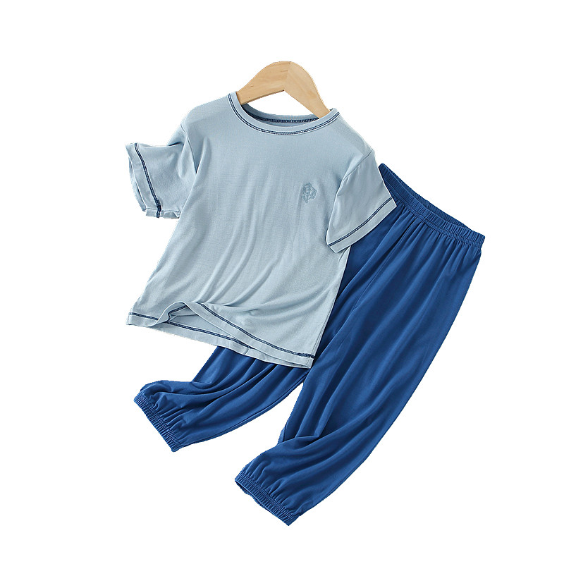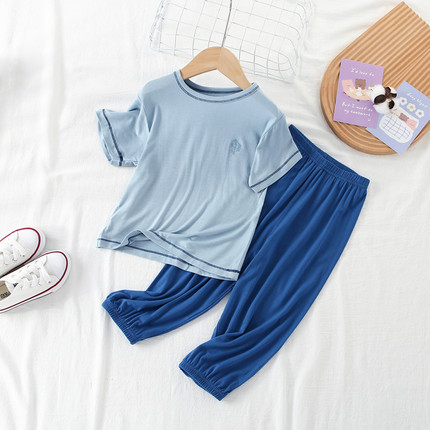 男童春夏季莫代尔冰丝薄款睡衣小男女孩短袖中大童家居空调服套装
