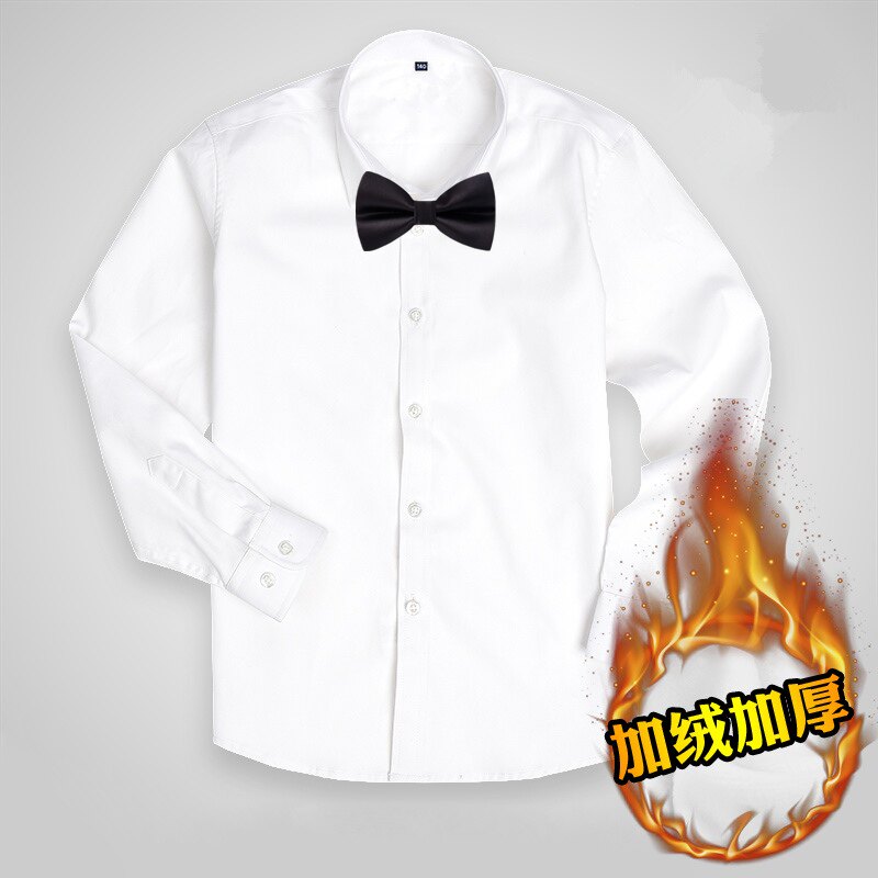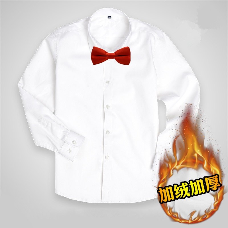 秋冬儿童白衬衫加绒加厚长袖纯棉小学生校服保暖男女童白色衬衣