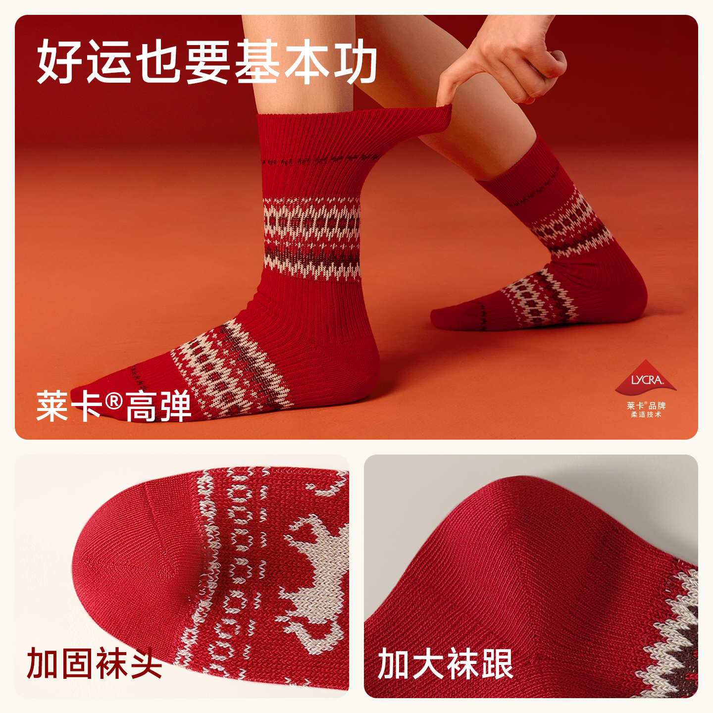 马年本命年红色袜子女款秋冬季新年送礼中筒无骨防臭长棉袜礼盒装