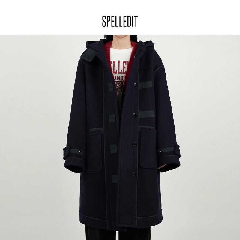 SPELLEDIT2024冬季新品双面格调大衣单排扣宽松休闲羊毛呢外套女