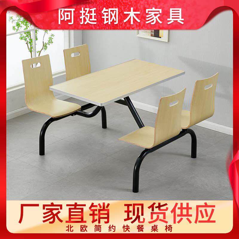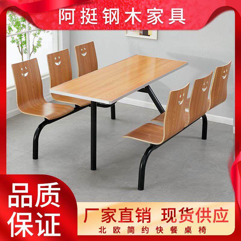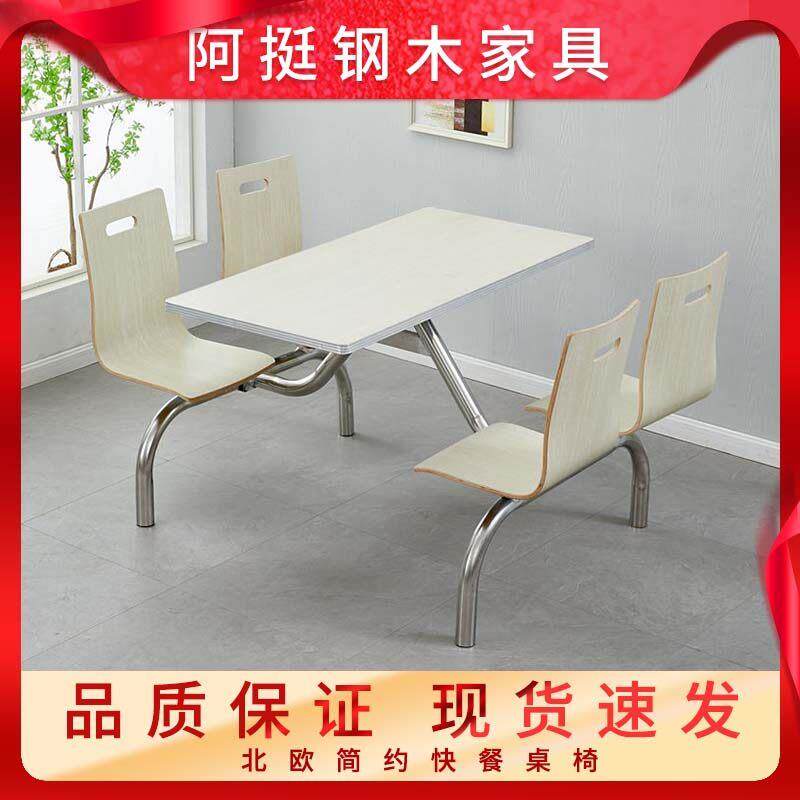 公司职工单位员工不锈钢连身桌椅学校学生食堂小吃店4人6人餐桌椅