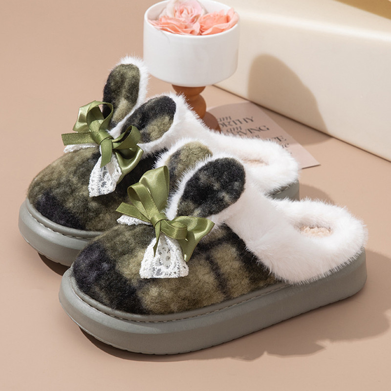 女士棉拖鞋2025新款洋气时尚秋冬季加绒保暖蝴蝶结厚底防滑居家鞋