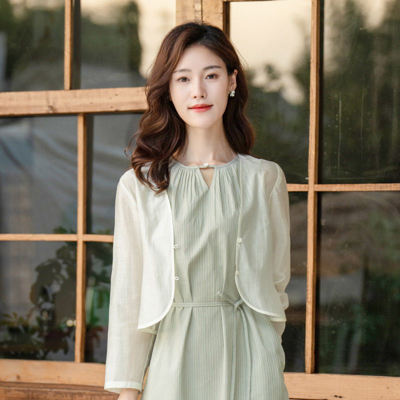 纻衣天丝九分袖衬衫2025夏装新品女温婉V领披肩搭配吊带防晒罩衫