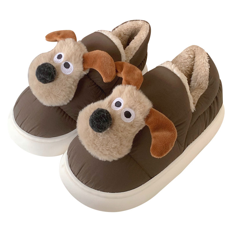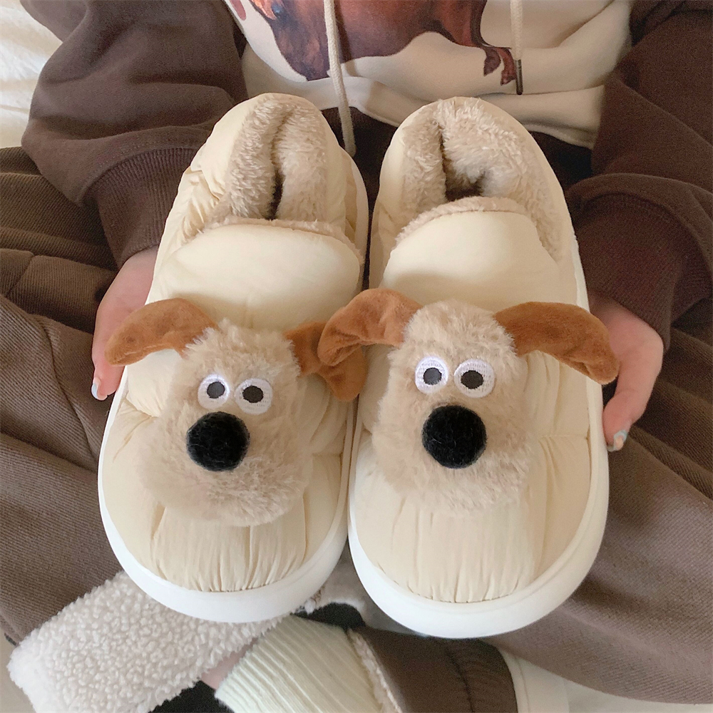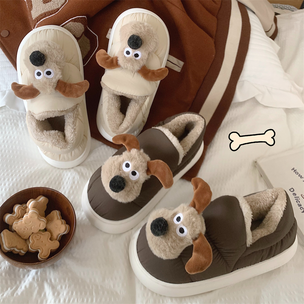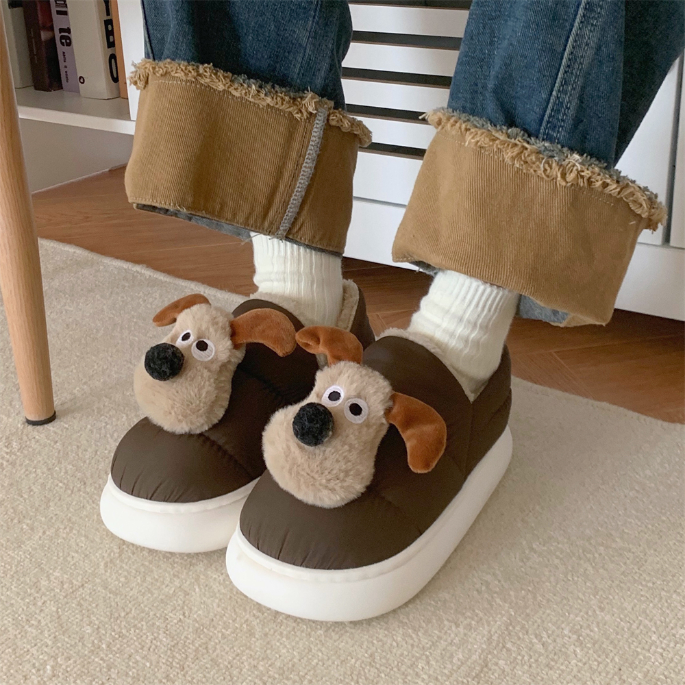 细细条 室内保暖防滑包跟月子鞋男女趣味可爱狗狗情侣加绒棉鞋冬