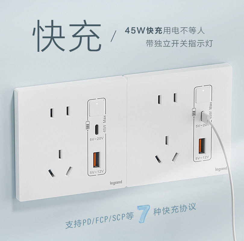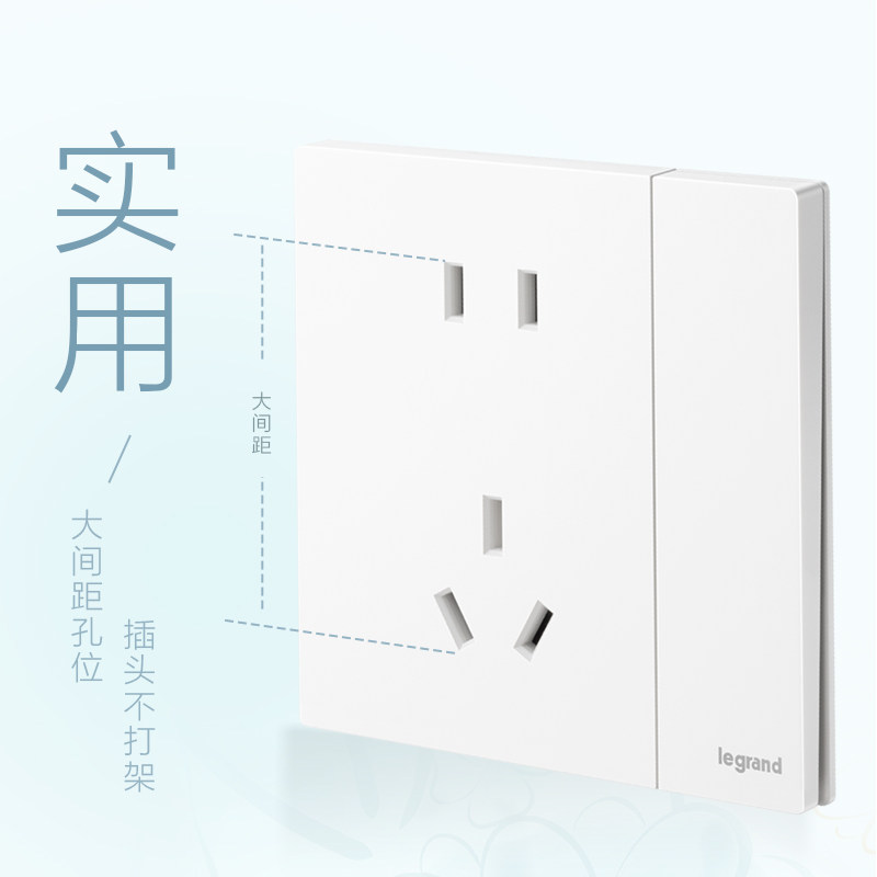 罗格朗开关插座面板家用超薄墙壁五孔插座86型暗装仕典plus陶瓷白