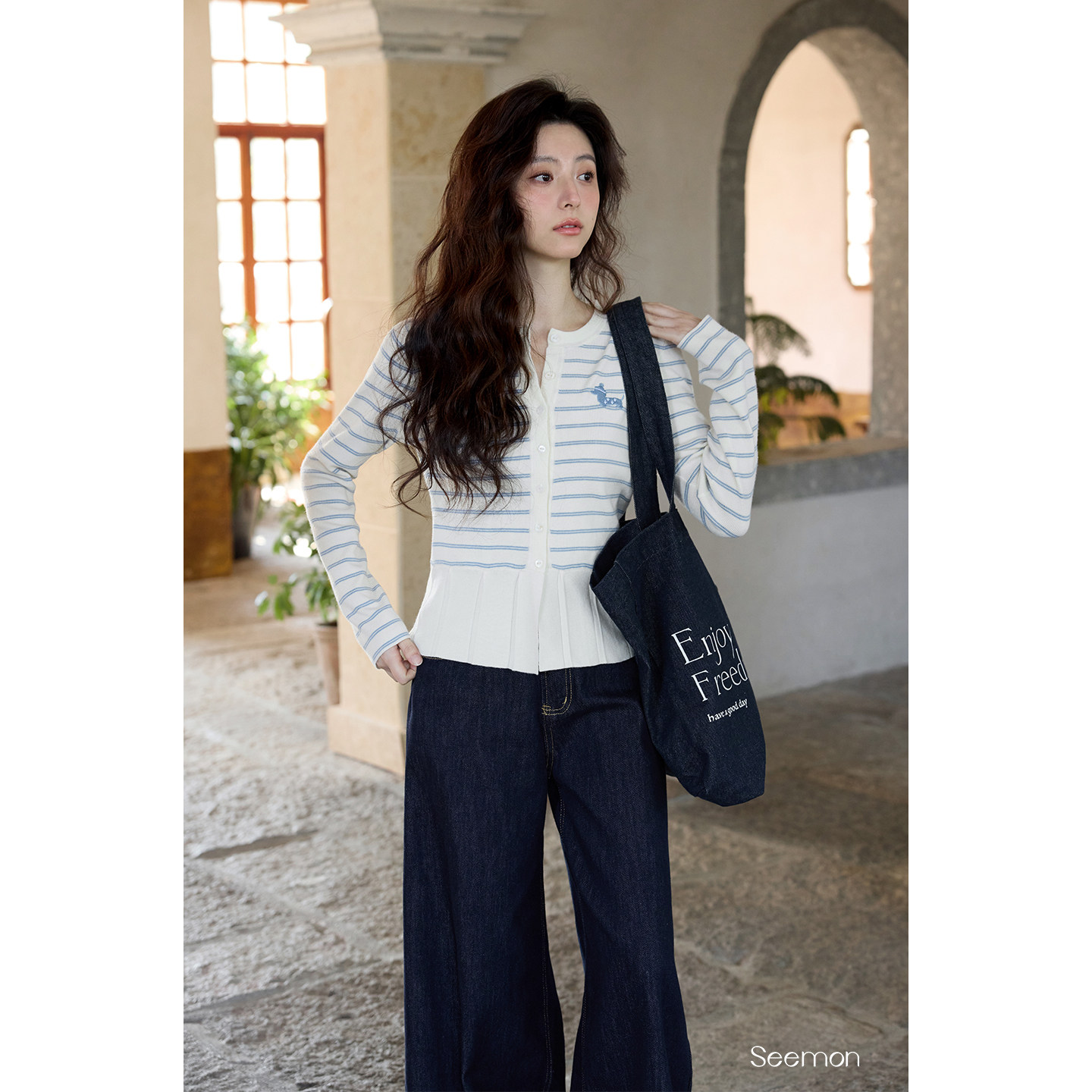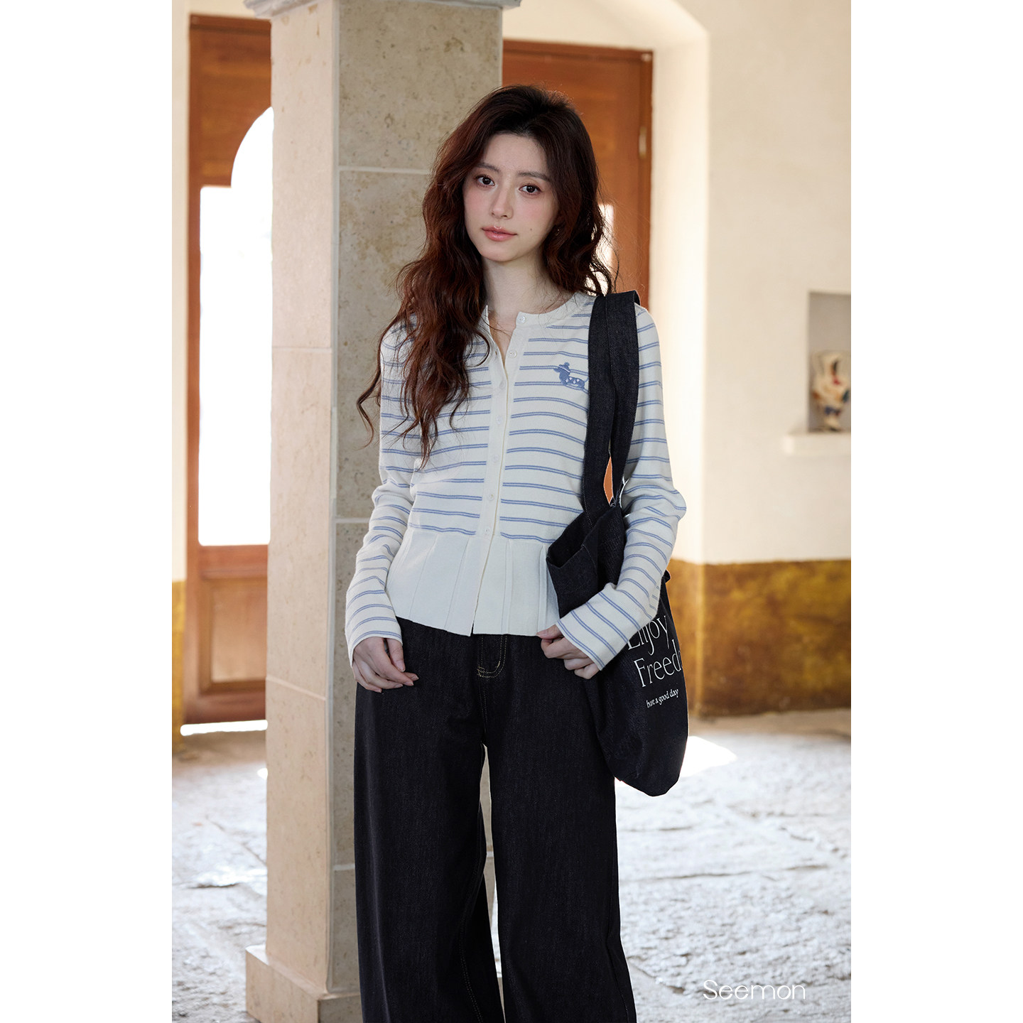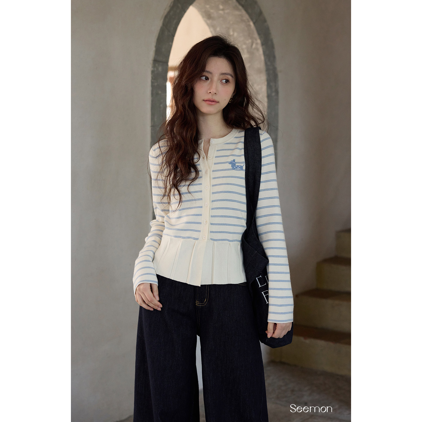 夕蒙2026新款春季韩系气质上衣小个子绝美小众独特条纹开衫针织衫